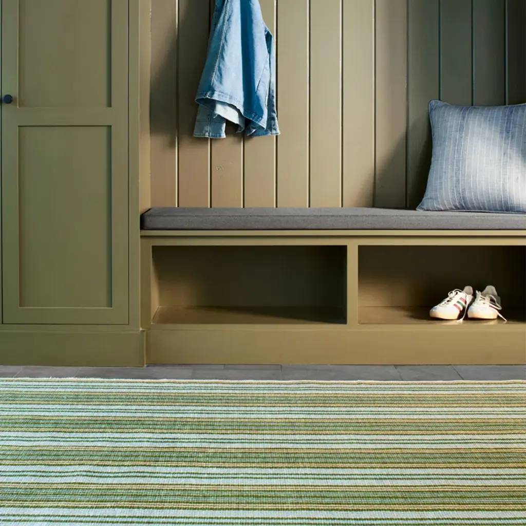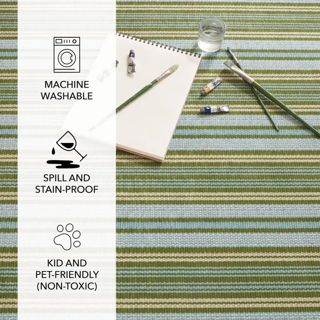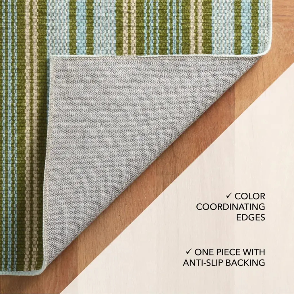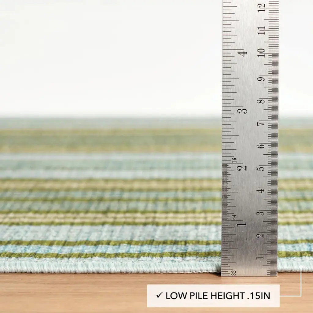 Part of our best-in-class collection of design-focused, machine-washable rugs. With a winning combination of blue and green stripes, this superior quality, machine-washable rug is versatile enough to use in any room where a bold pop of color, an eye-catching pattern, and a durable foundation are needed. Great for homes with pets and high-traffic areas like entryways, mudrooms, and kitchens.