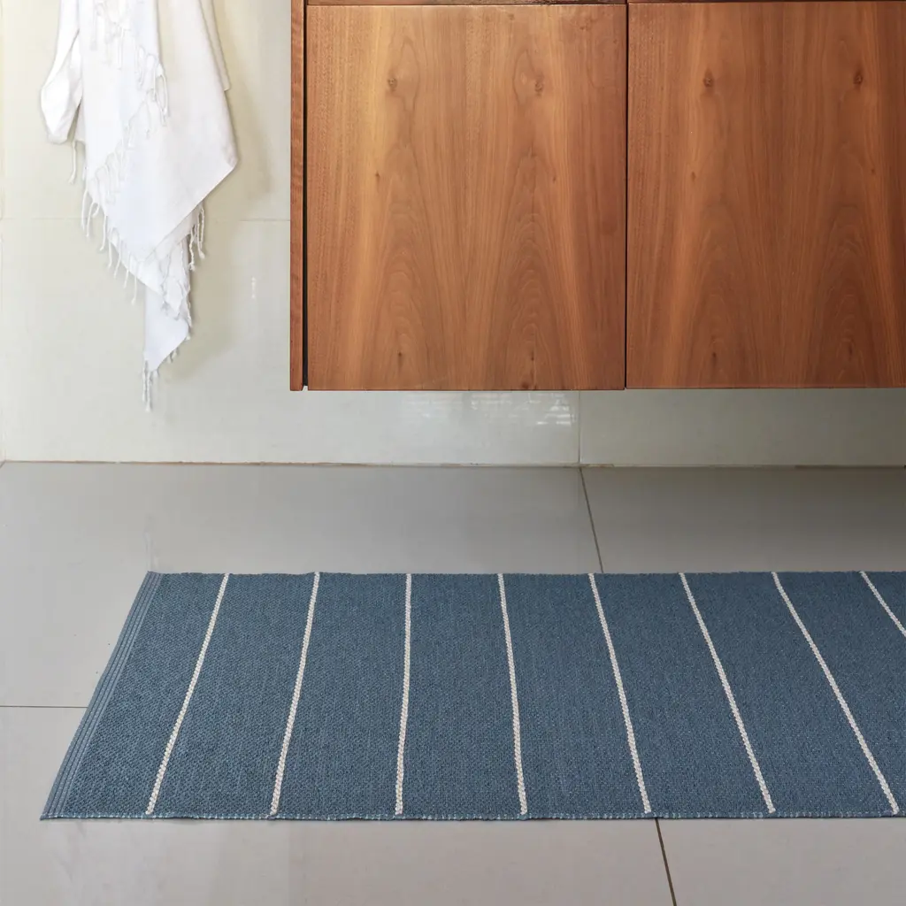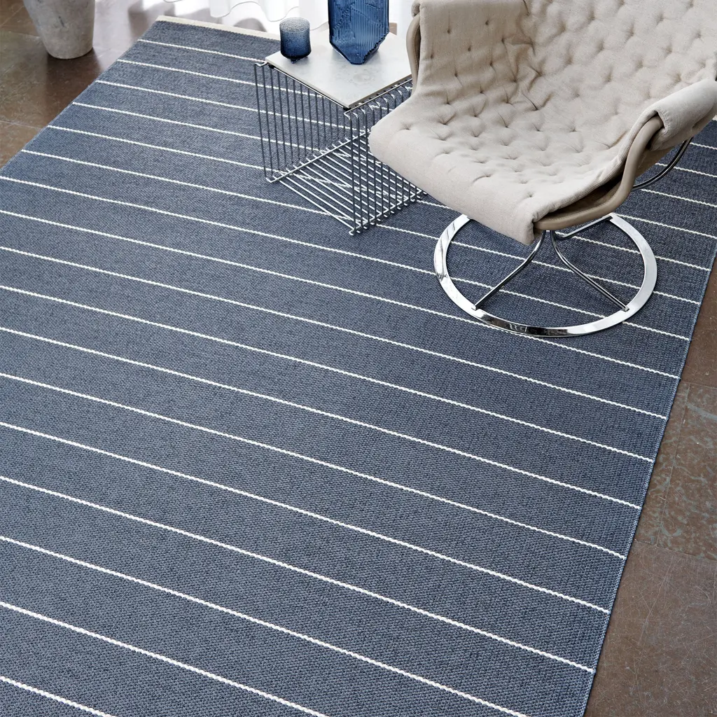 Transform your space with the enduring charm of the Carl Indoor/Outdoor Rug from Pappelina. This classic rug effortlessly combines simplicity and innovation, with a unique dual-sided design that allows you to easily switch between colors. Experience the timeless beauty of simple stripes while creating a new atmosphere in any room, all with a simple flip. Highlights