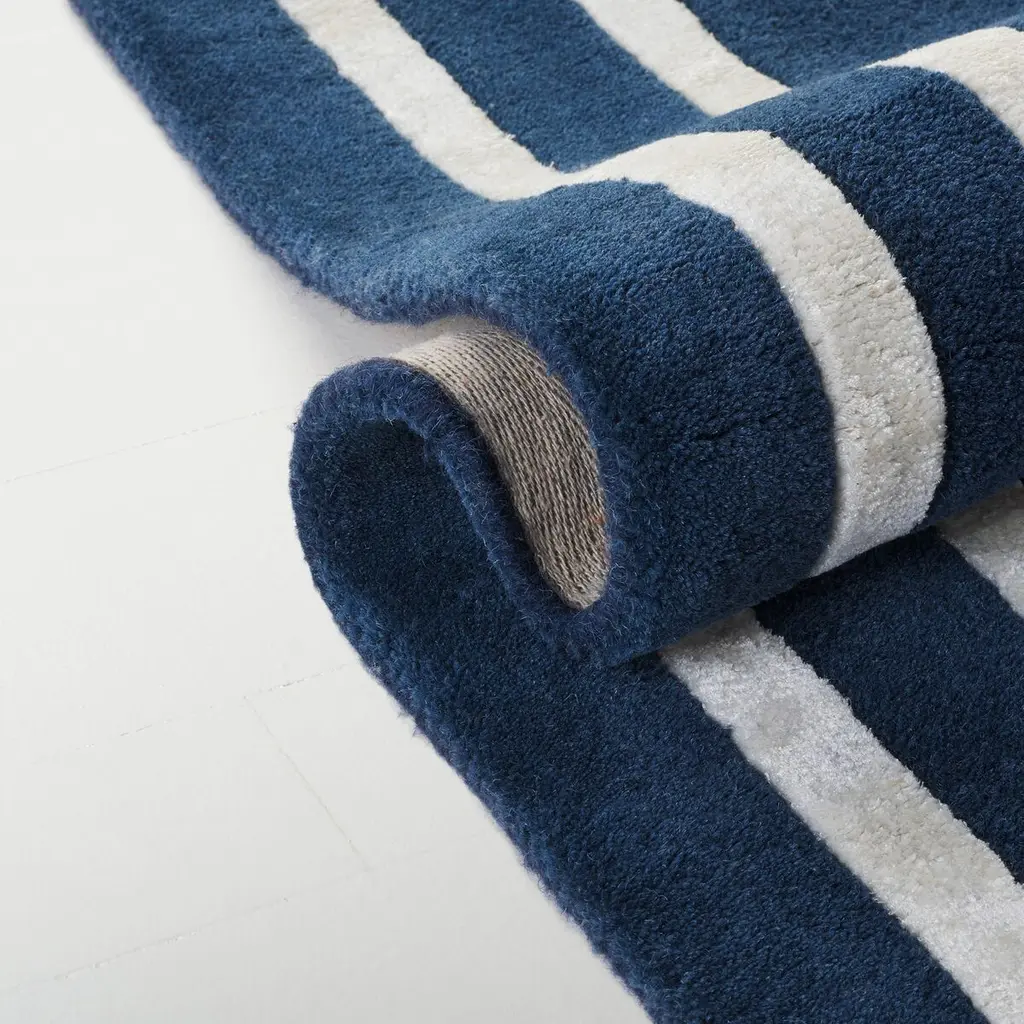 Elevate your living space with our exquisite hand tufted area rug, meticulously crafted in an elegant light blue and ivory palette. This large 8 by 10 feet rectangular rug boasts a plush height of 3/8 inch, providing a luxurious underfoot experience that complements any room. The refined, minimalist design features a serene light blue field surrounded by a sophisticated double border in contrasting ivory, embodying a timeless aesthetic that can harmonize with both contemporary and traditional interiors. Expertly constructed from a superior blend of 70% wool and 30% viscose, this rug offers both the warmth and durability of wool with the subtle sheen and softness of viscose. Its hand tufted technique yields a dense pile that is inviting and resilient, perfect for high-traffic areas or peaceful retreats within your home. Proudly made in India, this rug not only provides visual appeal but also the assurance of quality craftsmanship passed down through generations. Whether anchoring a living room, dining area, or bedroom, this beautiful rug promises to bring out the best in your home decor while ensuring comfort and elegance.