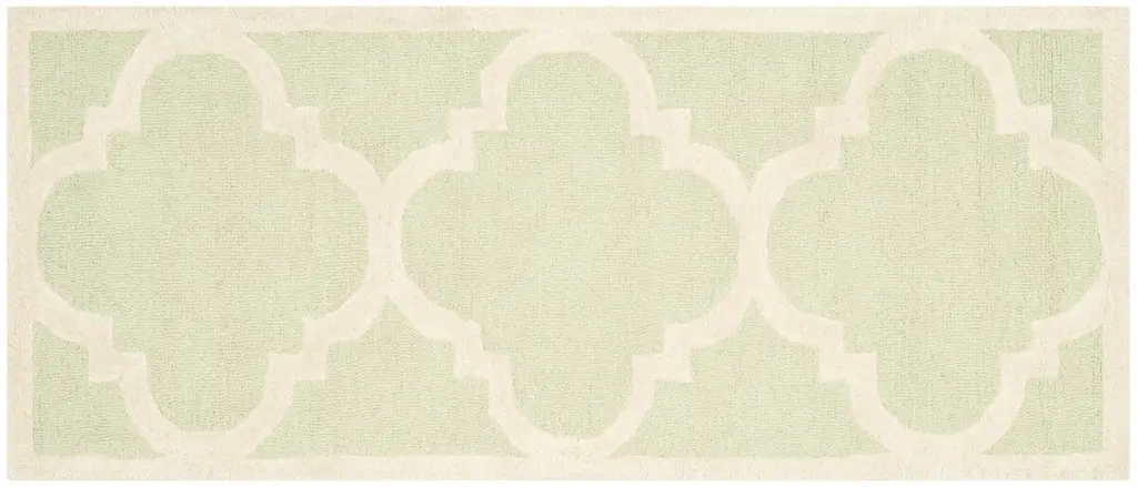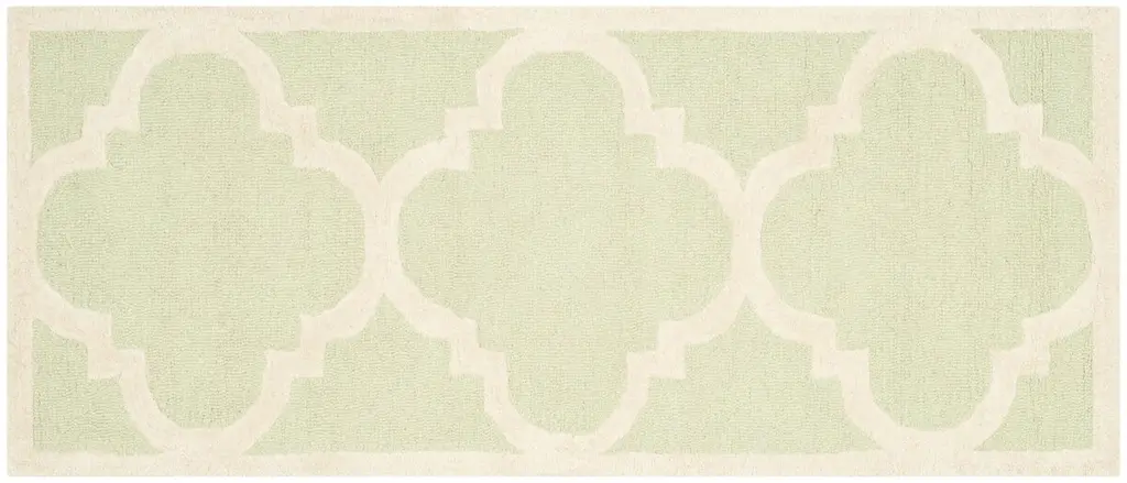 Crafted of wool, this rug refreshes any space with its raised Moroccan-inspired design and light green ground. We recommend a rug pad to extend the life of your rug and keep it securely in place.
