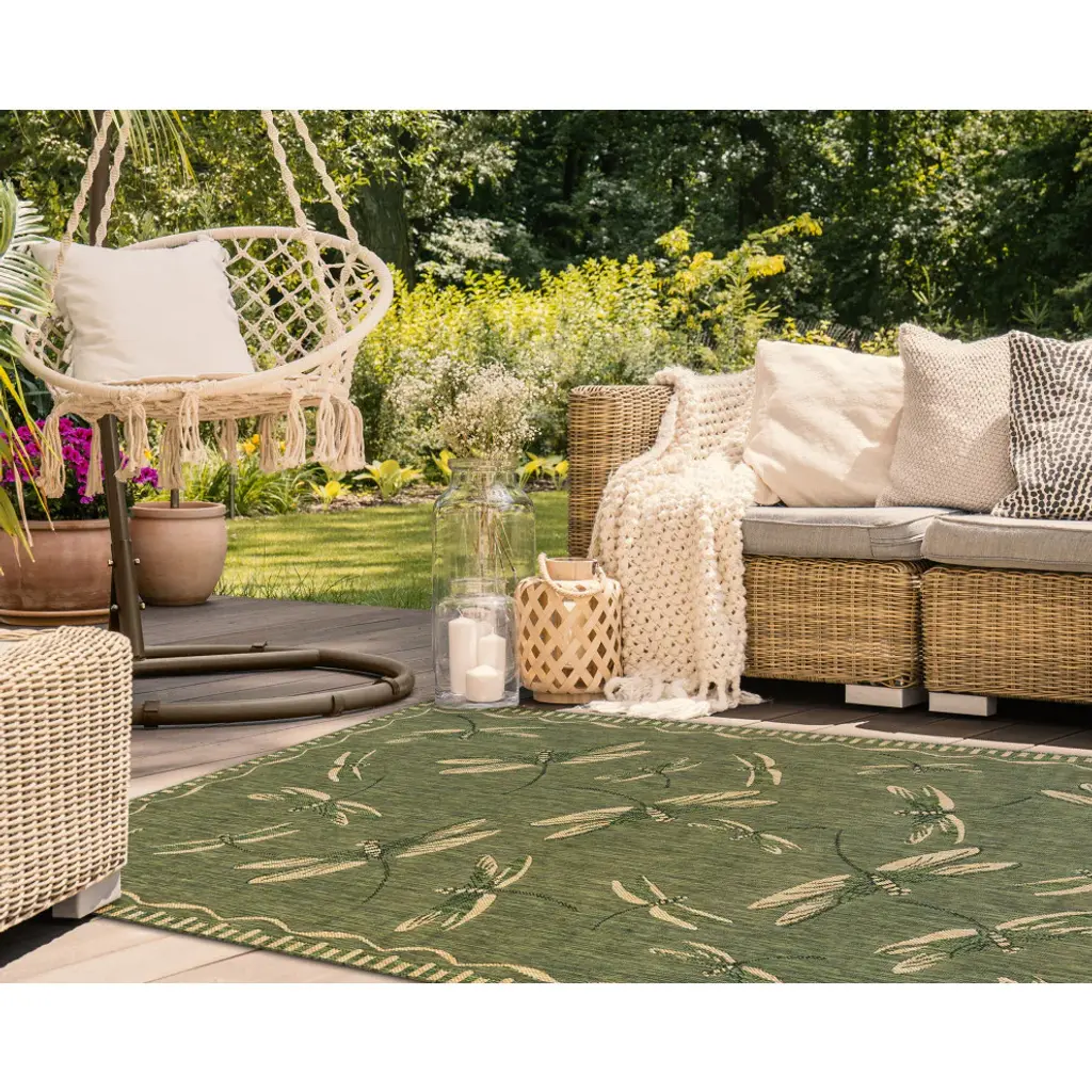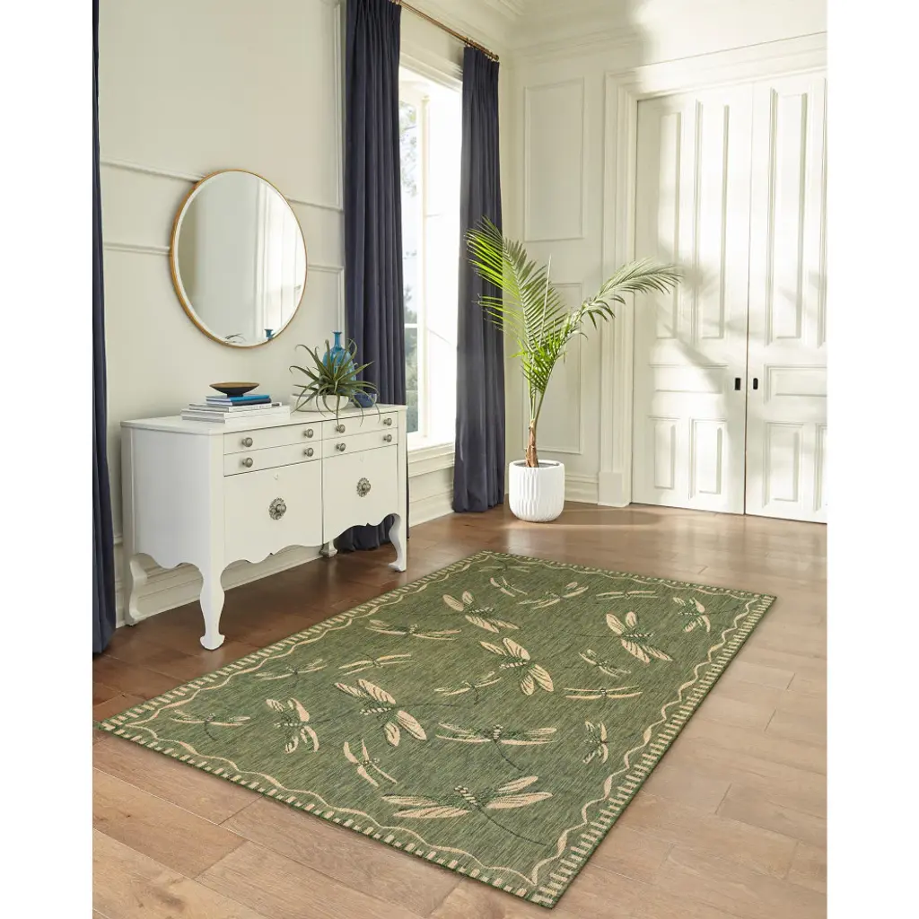 Carmel Dragonfly Indoor/outdoor Rug, Green, 4'10"x7'6"