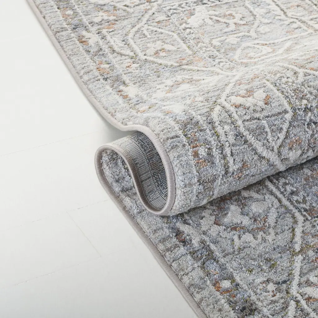 Experience the essence of traditional design and timeless elegance with this large, rectangular 8x10 grey and beige area rug. This Turkish masterpiece features a stunning blend of colors that subtly weave together to create a beautiful pattern. Made using power loomed techniques, this rug boasts 3/8" height, offering plush comfort with every step. Crafted from premium-grade polyester, it is not only visually appealing but also incredibly durable, capable of withstanding the rigors of daily usage while retaining its charm. Choose this rug to add a touch of class to your living space that combines quality craftsmanship and style. Elevate the aesthetics of your home with this Turkish treasure.