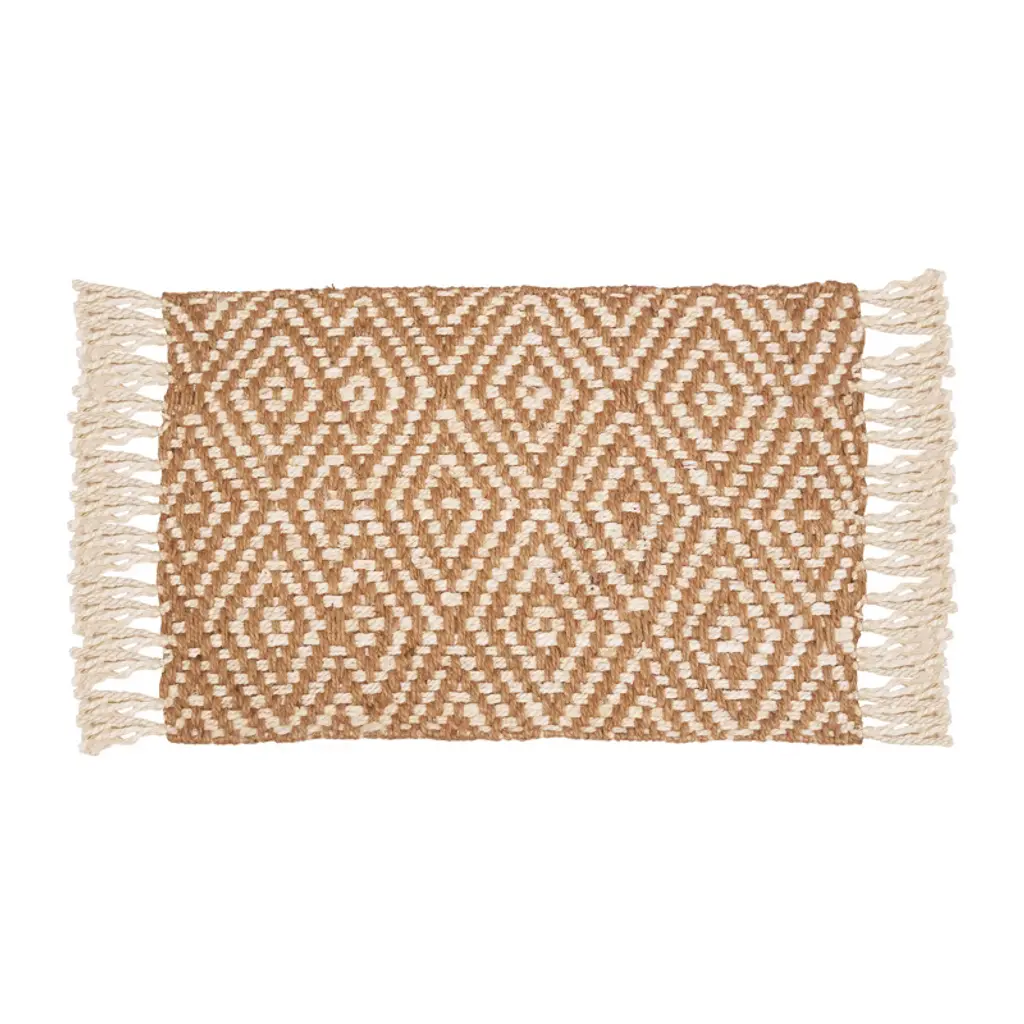 Made from very sustainable Jute material, carol & frank's Fringed Diamond jute rugs adds a personalized touch to every space. The biodegradable material features modern diamond pattern in trendy colors that look beautiful when paired with the fringe details. Jute rugs are ideal, natural looking accent pieces for any home.