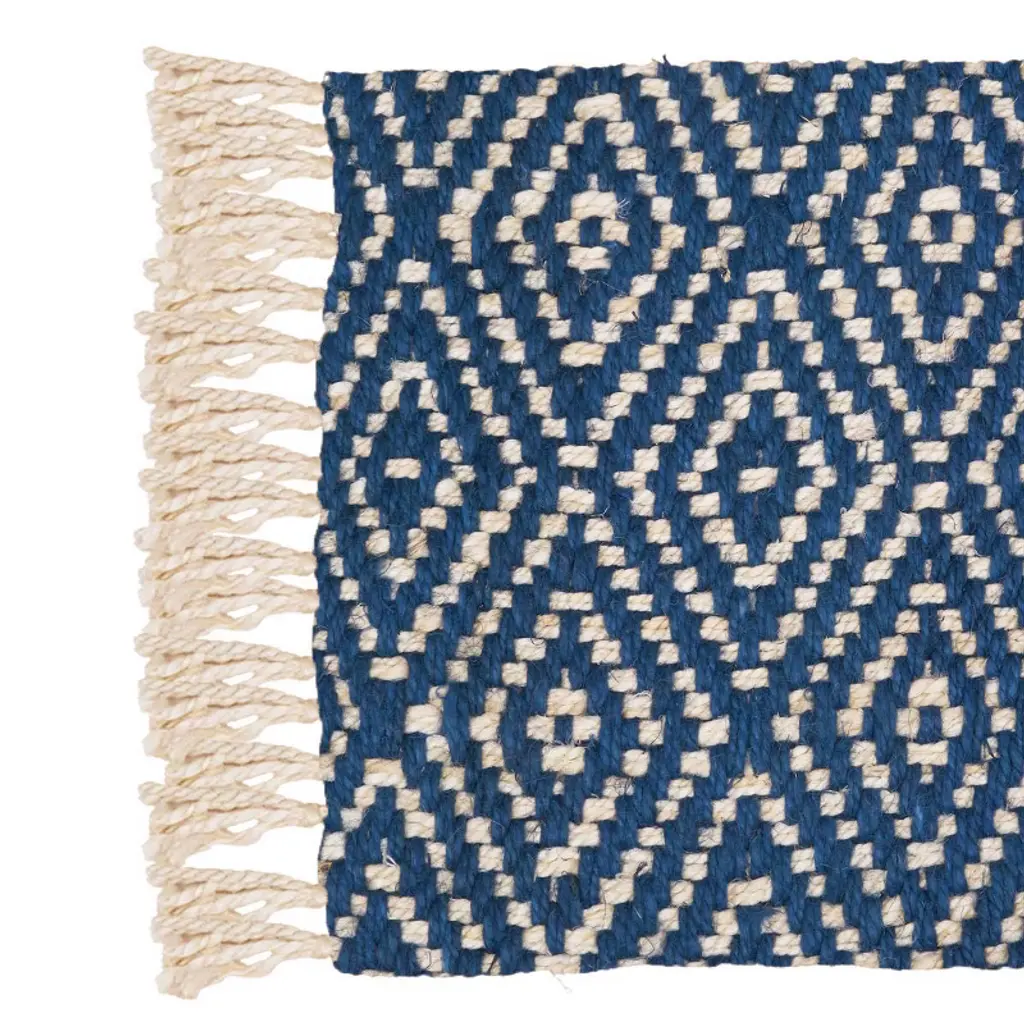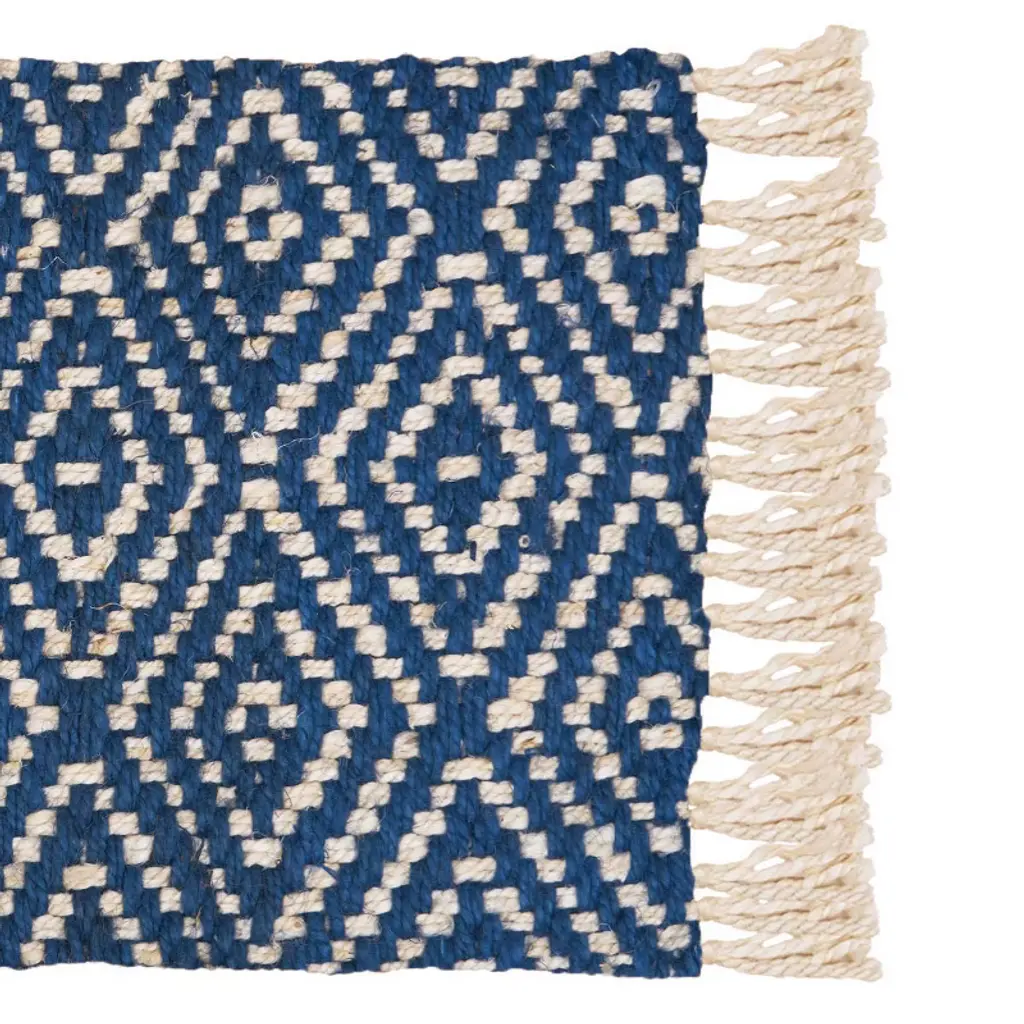 Carol & Frank Fringed Diamond Indigo Jute Rug