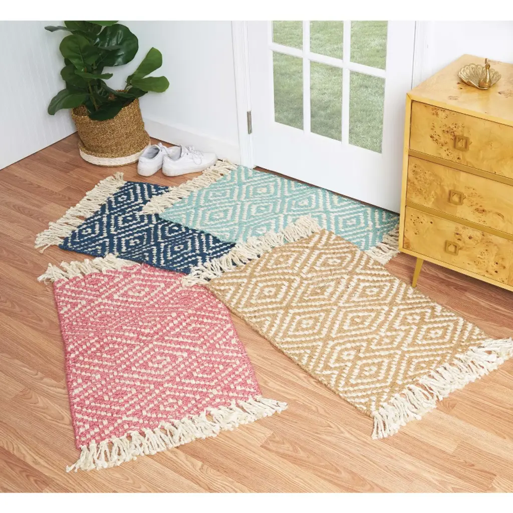 Made from very sustainable Jute material, carol & frank's Fringed Diamond jute rugs adds a personalized touch to every space. The biodegradable material features modern diamond pattern in trendy colors that look beautiful when paired with the fringe details. Jute rugs are ideal, natural looking accent pieces for any home.