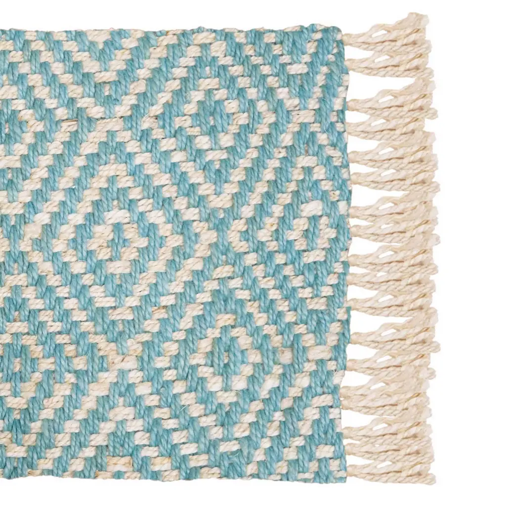 Made from very sustainable Jute material, carol & frank's Fringed Diamond jute rugs adds a personalized touch to every space. The biodegradable material features modern diamond pattern in trendy colors that look beautiful when paired with the fringe details. Jute rugs are ideal, natural looking accent pieces for any home.