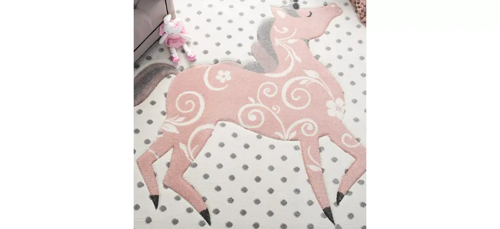 With pleasing hues and playful etched designs, the delightful Carousel Unicorn Kids Area Rug sparkles in children's favorite rooms. Carousel Kids rugs are power-loomed using soft yet durable synthetic yarns for lasting beauty even when subjected to years of busy little feet. Carousel Kids Rugs turn fanciful storybook animals and beloved motifs into colorful decor for kids.