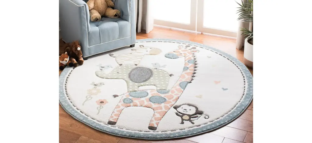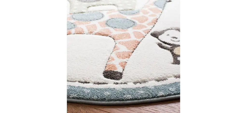 The Carousel Zoo Friends Kids Area Rug Round turns fanciful storybook animals and beloved motifs into colorful decor for kids. With pleasing hues and playful etched designs, these delightful kid's rugs sparkle in children's favorite rooms. Carousel Kids rugs are power-loomed using soft yet durable synthetic yarns for lasting beauty even when subjected to years of busy little feet.
