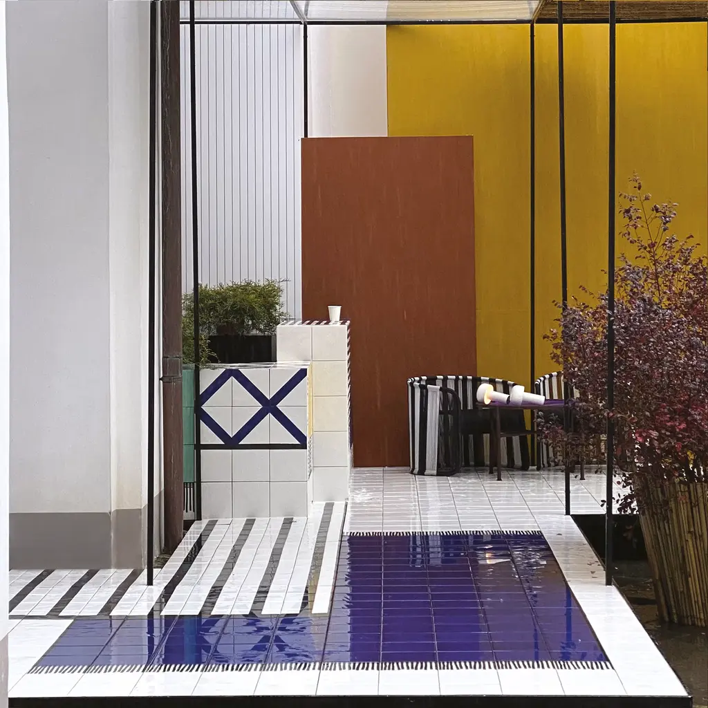 A clean and elegant, singular piece from the refined series of ceramic composition resembling rugs designed by Giuliano Andrea dell’Uva, this stunning design exudes a 1950s-inspired charm of unparalleled sophistication. The surface measures 160 X 120 cm. Black and white stripe grace its sleek ceramic tiles, deftly handcrafted and painted by hand. Customizable upon request, please consult the Concierge for further details.