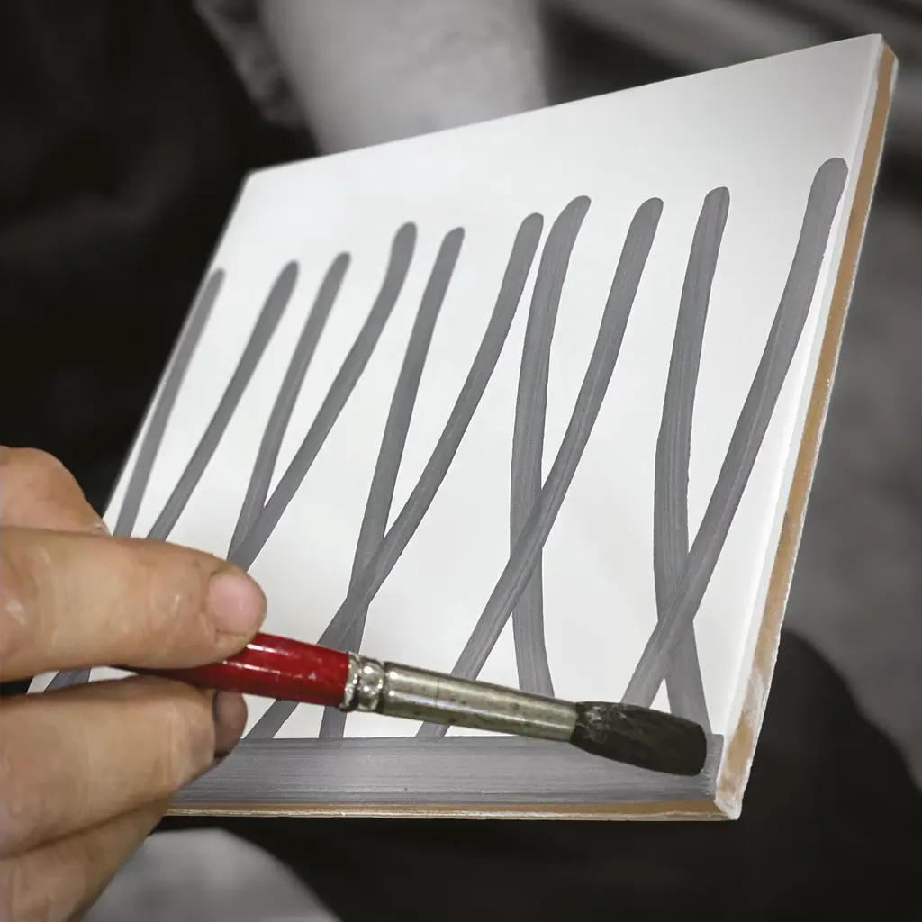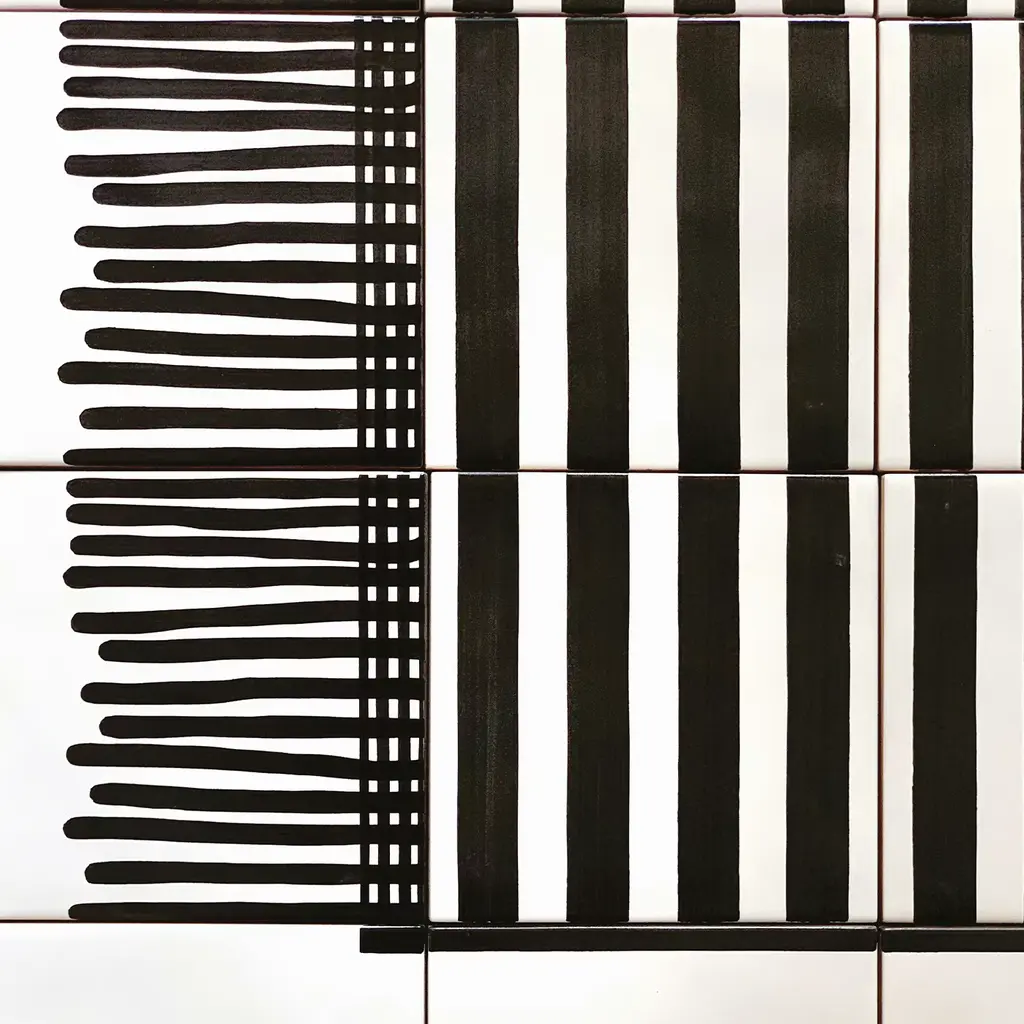 Strikingly realistic and utterly unique, this spectacular ceramic composition resembling a rug belongs to an iconic series designed by Giuliano Andrea dell’Uva. Exuding impeccable craftsmanship and modern charm, it is handpainted combining a 1950s style black-and-white striped motif and a solid green half, reproducing one of the shades traditional of Capri. A series of slightly braided fringes add a dynamic accent to the piece. The total surface measures 200 x 140 cm. Customizable upon choice by contacting Concierge.