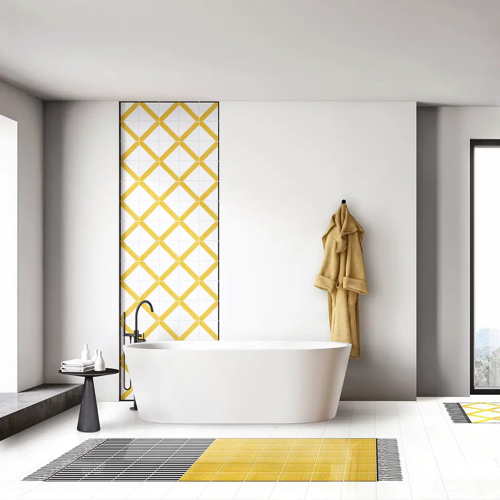 Vivaciously adorning a modern and sophisticated interior especially in a minimalist bathroom decor, this spectacular design by Giuliano Andrea dell’Uva embodies the harmonious merging between traditional character and contemporary innovation: a ceramic rug painted by hand in one of Capri's traditional colors, whose true-to-life charm is enhanced by the exquisite fringes. The surface of the composition measures 160 x 120 cm. This iconic piece is customizable upon request to the Concierge.