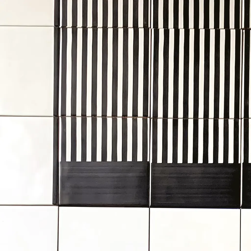 Sophistication and modern charm define this spectacular design by Giuliano Andrea dell’Uva: a ceramic composition resembling a rug crafted and decorated by hand to stunningly enrich a contemporary interior. Half yellow, one of the delicate shades traditional of the island of Capri, and half striped in a 1950s-inspired black and white motif. The total surface measures 220 x 140 cm. Entirely customizable, please inquire with the Concierge for further details.