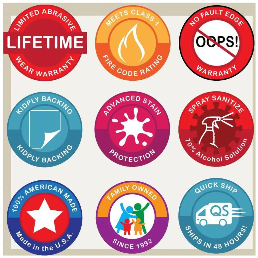 Carpets for Kids Colorful Rows Seating Classroom Rug – 6' x 9' Rectangle, Multi, Seats 25 Enhance classroom organization and create an engaging learning environment with the Carpets for Kids Colorful Rows Seating Rug. This spacious 6' x 9' rectangular rug features 25 vibrant seating spots arranged in colorful rows, making it perfect for group activities, circle time, or independent learning. Its bold colors not only grab attention but also help students easily identify their personal seating areas, promoting a structured and interactive classroom. Key Features & Benefits: Origin: Made in the USA by Carpets for Kids Collection: Premium Face Weight: 24 oz/sq-yd Surface Material: Commercial Cut Pile Carpet – 100% Continuous Filament Type 6 & 6/6 Nylon – Recyclable Anti-stain Treatment: Up to 20X Stain Protection – True Stain Blocker Technology makes cleanup a cinch using only hot water extraction with no harsh chemicals necessary. All fibers completely saturated with stain treatment Backing Material: KIDply Backing System features a revolutionary patented technology that assures your rug looks better longer with dimensional stability. Helps prevent wrinkling & creasing & unmatched softness & flexibility Fire Code Rating: Meets NFPA 253, Class I fire code requirements Mfg Warranty: Lifetime Limited Abrasive Wear Warranty, No Fault Edge Warranty, Advanced Anti-Static Protection, Advanced Stain Protection No Fault Edge Warranty: We will replace the edging on your rugs no matter how long they have been in the classroom. Just pay shipping one way.