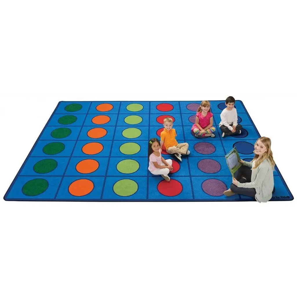 Carpets for Kids KID$Value PLUS Simple Shapes Seating Classroom Rug – 16" Squares Kit, Set of 12 Create a colorful and organized classroom environment with the Carpets for Kids KID$Value PLUS Simple Shapes Seating Rug Kit. This set includes 12 individual 16" square rugs, each featuring a bold, easy-to-identify shape in a vibrant color. Perfect for classrooms, daycares, or homeschool spaces, these soft and durable rugs help young learners with shape recognition, color identification, and personal space awareness during group activities or circle time. Key Features & Benefits: Origin: Made in the USA by Carpets for Kids. Collection: KID$ Value PLUS. Face Weight: 14 oz/sq-yd. Surface Material: Commercial Cut Pile Carpet - 100% Continuous Filament Type 6 Nylon - Recyclable. Anti-stain Treatment: Up to 25X Stain Protection - True Stain Blocker Technology makes clean up a cinch using only hot water extraction with no harsh chemicals necessary. All fibers completely saturated with stain treatment. Backing Material: KIDply Backing System features a revolutionary patented technology that assures your rug looks better longer with dimensional stability. Helps prevent wrinkling & creasing & unmatched softness & flexibility. Fire Code Rating: Meets NFPA 253, Class I fire code requirements. Mfg Warranty: 8-Year Limited Abrasive Wear Warranty, No Fault Edge Warranty, Advanced Anti-Static Protection, Advanced Stain Protection. No Fault Edge Warranty: We will replace the edging on your rugs no matter how long they have been in the classroom. Just pay shipping one way.