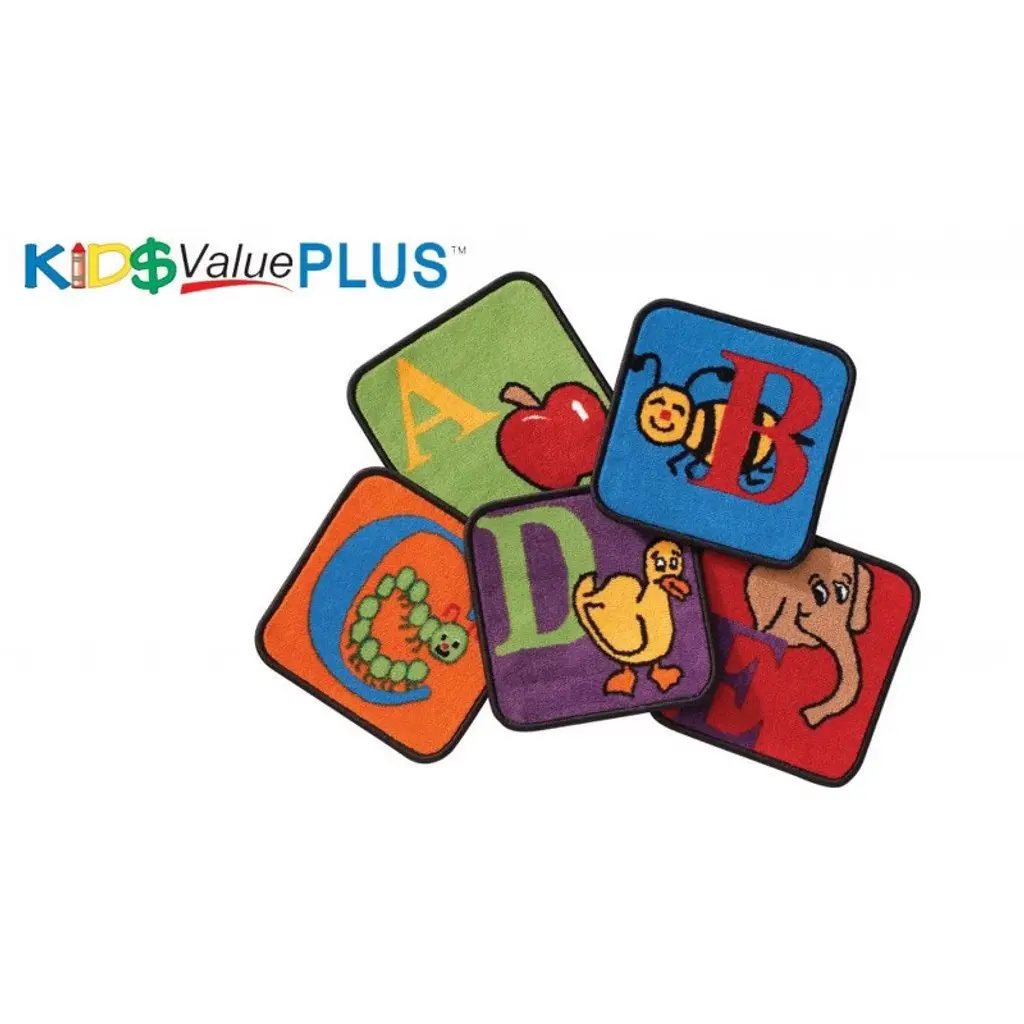 Carpets for Kids PLUS Reading by the Book Seating Learning Rug – 12" Squares Kit, Set of 26 Make storytime engaging and organized with the Carpets for Kids PLUS Reading by the Book Seating Learning Rug. This set includes 26 individual 12" square carpet tiles, each featuring a letter of the alphabet, designed to create a fun and educational seating area in your classroom, library, or daycare. Ideal for literacy activities, circle time, and group learning, these colorful squares help children recognize letters while giving each student their own defined personal space. Made from durable, easy-to-clean materials, they’re perfect for busy educational settings. Key Features & Benefits: Origin: Made in the USA by Carpets for Kids Collection: KID$ Value PLUS Face Weight: 14 oz/sq-yd Surface Material: Commercial Cut Pile Carpet – 100% Continuous Filament Type 6 Nylon – Recyclable Anti-stain Treatment: Up to 25X Stain Protection with True Stain Blocker Technology; cleans easily using only hot water extraction with no harsh chemicals; all fibers fully saturated with stain treatment Backing Material: KIDply Backing System with patented technology for dimensional stability; helps prevent wrinkling, creasing, and provides unmatched softness and flexibility Fire Code Rating: Meets NFPA 253, Class I fire code requirements Mfg Warranty: 8-Year Limited Abrasive Wear Warranty, Advanced Anti-Static Protection, Advanced Stain Protection No Fault Edge Warranty: We will replace the edging on your rugs no matter how long they have been in the classroom. Just pay shipping one way