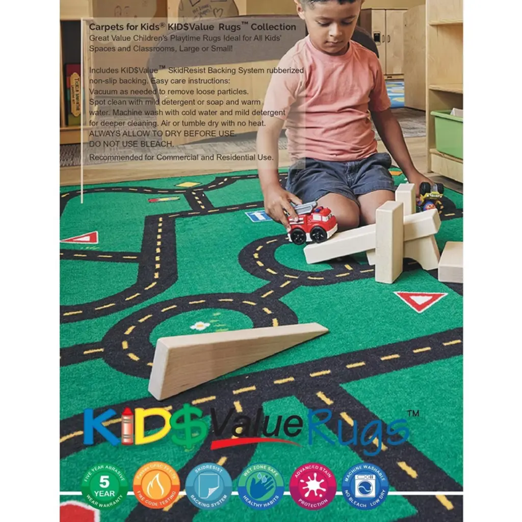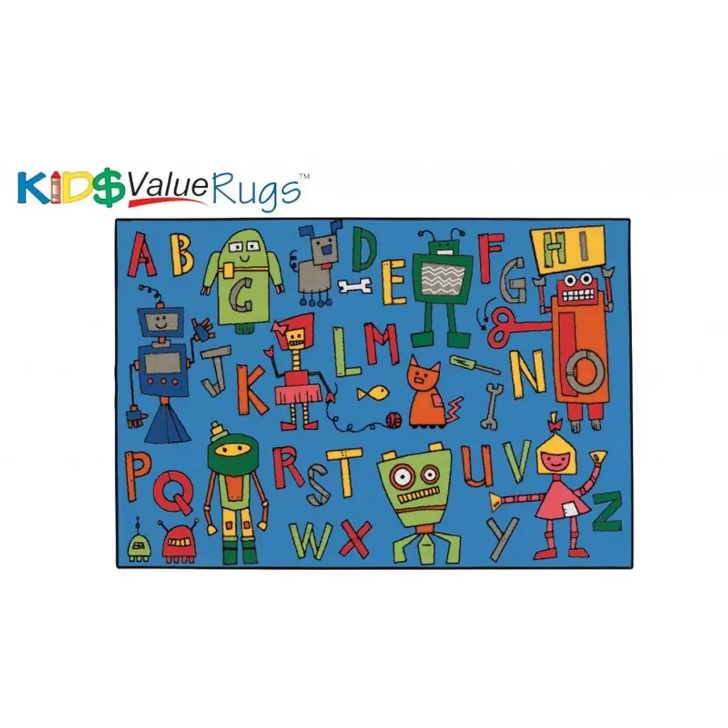 Carpets for Kids Reading Robots Value Learning Rug,Rectangle Encourage literacy and creativity with the Carpets for Kids Reading Robots Value Learning Rug. Designed to spark imagination and learning, this rectangle rug features playful, colorful robots that are perfect for reading and learning spaces. Ideal for classrooms, libraries, and kids' rooms, it fosters a fun, engaging atmosphere while providing a soft, durable surface for children to explore their world. Crafted from high-quality, commercial-grade materials, the rug features a kid-friendly, easy-to-clean surface with anti-stain technology. The rug’s KIDply backing ensures stability and prevents wrinkles and creasing, while offering superior softness for a comfortable play or learning experience. This rug is not only educational but also safe, meeting the highest fire safety standards and backed by a lifetime warranty. Key Features & Benefits : Origin: Made in the USA by Carpets for Kids Collection: KID$ Value Face Weight: 12 oz/sq-yd Surface Material: Commercial Cut Pile Carpet – 100% Continuous Filament Type 6 Nylon – Recyclable Anti-Stain Treatment: Offers up to 25X stain protection. True Stain Blocker Technology makes cleanup simple using only hot water extraction—no harsh chemicals needed. All fibers are fully saturated with stain treatment Backing Material: KID$Value SkidResist backing delivers a rubberized grip on smooth flooring and is machine washable. Includes non-allergenic synthetic latex Fire Code Rating: Passes CPSC FF1-70, Standard for the Surface Flammability of Carpets and Rugs Manufacturer Warranty: 5-Year Limited Abrasive Wear Warranty (excluding backing and serge). Features advanced stain protection, soil resistance, and is machine washable using cold water with mild detergent on a gentle cycle. Line dry only. Do not bleach
