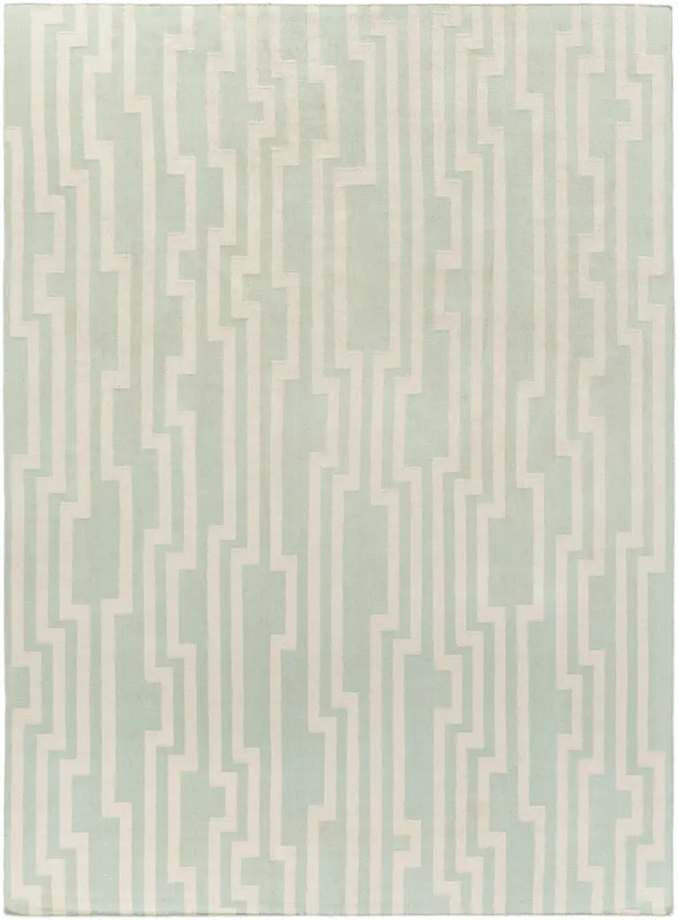 Collection: Carteret Colors: Ice Blue, Peach Construction: Hand Woven Material: 100% Wool Pile: No Pile Styles: Contemporary Made In: India Thickness: 0.16" Price Range: $$$$$ (Affordable)