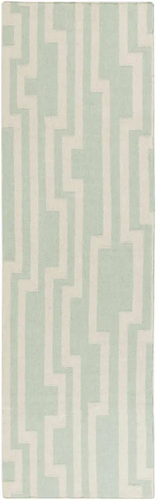 Collection: Carteret Colors: Ice Blue, Peach Construction: Hand Woven Material: 100% Wool Pile: No Pile Styles: Contemporary Made In: India Thickness: 0.16" Price Range: $$$$$ (Affordable)