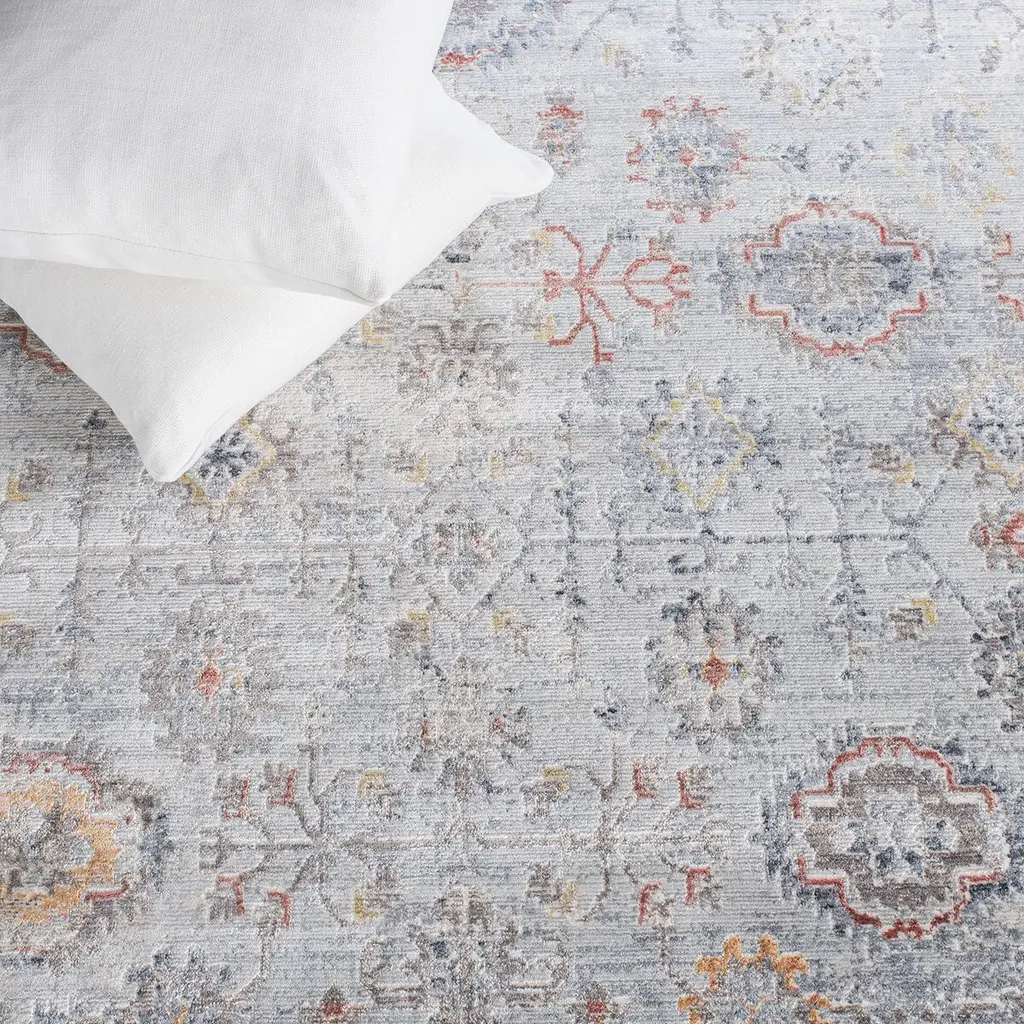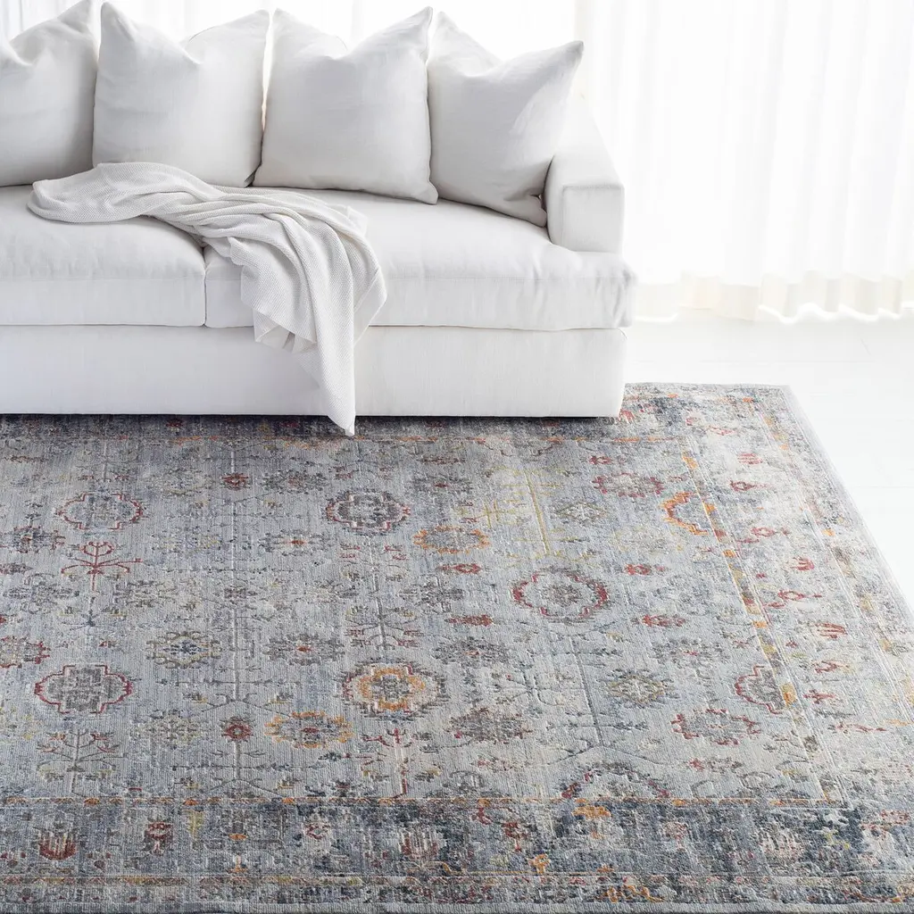 Elevate your living space with this exquisite 6' X 9' Power Loomed Area Rug, a harmonious blend of traditional design and modern craftsmanship. Made in Turkey, this medium rectangle rug showcases a Light Grey/Navy color palette, exuding a serene yet majestic allure that will compliment any room. The rug features a traditional style deeply rooted in history, with ornate patterns echoing timeless elegance. The design incorporates a variety of shapes and motifs, including floral arrangements and geometric borders, that provide an authentic classical touch. Its rich and vibrant accents in shades of orange and navy stand out against the light grey background, creating an eye-catching contrast. Crafted from a high-quality mix of polyester and polypropylene, this rug boasts durability and softness, offering a comfortable underfoot experience with a practical height of 1/4 inches. Its OEKO-TEX certification ensures that the rug is free from harmful substances, making it a safe choice for your home and family. The power-loomed construction guarantees precision and uniformity, reflecting a rug that is as robust as it is beautiful. Whether placed in a living room, dining area, or bedroom, this versatile piece will bring a touch of sophistication and warmth to your decor. Connect with tradition and embrace modernity with this captivating area rug, a testament to artistry and elegance that will stand the test of time.