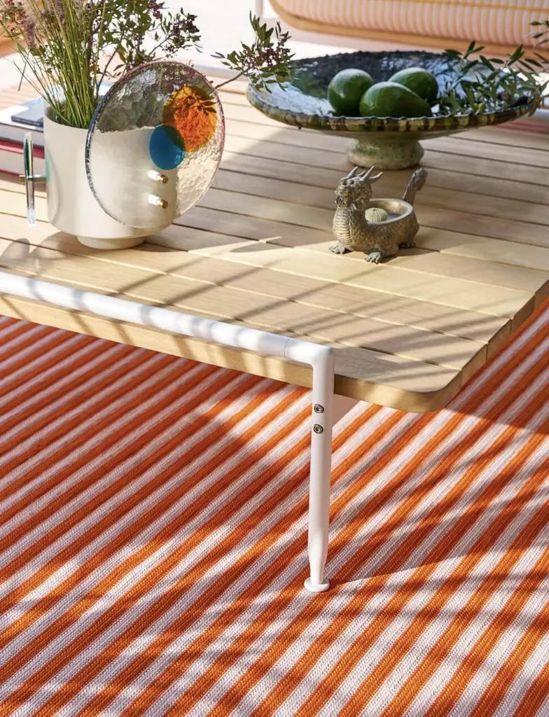 Cassina Soleil Rug A rug with lively, brilliant colours for alfresco spaces.With its striped motif in four colour options, Soleil adds a pop of personality to complete any outdoor setting in perfect harmony with the furniture from the Cassina Outdoor collection.Available in rectangular, square or round versions, in standard or custom sizes, Soleil is made of polypropylene, an entirely recyclable material.MATERIALSPolypropyleneCOLOURSBeige-grey, turquoise-green, orange-pink, yellow-beigeA rug with lively, brilliant colours to enhance the decor of gardens, terraces and any other outdoor area. With its striped motif in four colour options, Soleil adds a pop of personality to complete any outdoor setting in perfect harmony with the furniture from the Cassina Outdoor collection. Available in rectangular, square or round versions, in standard or custom sizes, Soleil is made of polypropylene, an entirely recyclable material. Important information regarding color(s) of products:Actual colors may vary. This is due to the fact that every computer monitor, laptop, tablet and phone screen has a different capability to display colors and that everyone sees these colors differently. We try to edit our photos to show all of our products as life-like as possible, but please understand the actual color may vary slightly from your monitorAbout The Designer: (CAMBIA CON CADA DISEÑADOR, INFO EN LA WEB)The work of Dutch artist and designer Aldo Bakker (born 1971) has a delicate and rare sense of harmony and the shapes communicate through colour, association, touch, texture, and materiality. His designs are exquisitely balanced, often strange, yet strangely familiar. Timeless, sculptural and always intended to trigger a response. Widely published and exhibited, Aldo Bakker continues selected collaborations with renown manufacturers while further completing his personal collection with master craftsmen and galleries around the world.About The Manufacturer:Established in 1927 by Cesare and Umberto Cassina in Meda, Italy, Cassina launched industrial design in Italy in the 1950s, based on a totally innovative approach that marked the transition from artisan production to mass production. With a mindset focused on research and innovation, Cassina combines technology and long-standing artisan craftsmanship. Memory, research, innovation. Cassina blends traditional skills and superior productivity, meticulous attention to detail and passion, uniqueness and experimentation, wellbeing and sustainability. Today, the company continues to address new lifestyles with the creation of complete, harmonious interior decor solutions that embody the best contemporary design for all areas of the home.
