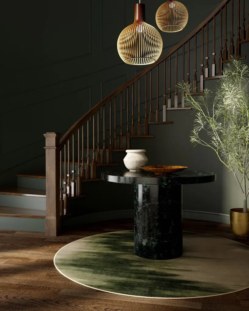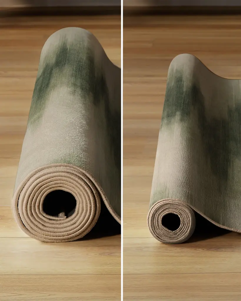 Entertain with ease with our Nina Takesh Cassis Olive Rug. Inspired by movement found in nature, this calming design features a flowing, irregular motif that resembles the path of a river. A peaceful variety of olive green hues set against a soft stone background celebrates the various forms of plants such as majestic trees, delicate leaves, and lush moss. Water-resistant, stain-resistant, and machine-washable. Rug colors may vary slightly according to your device and the lighting in your space.