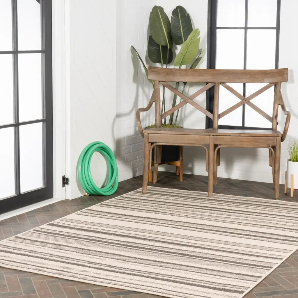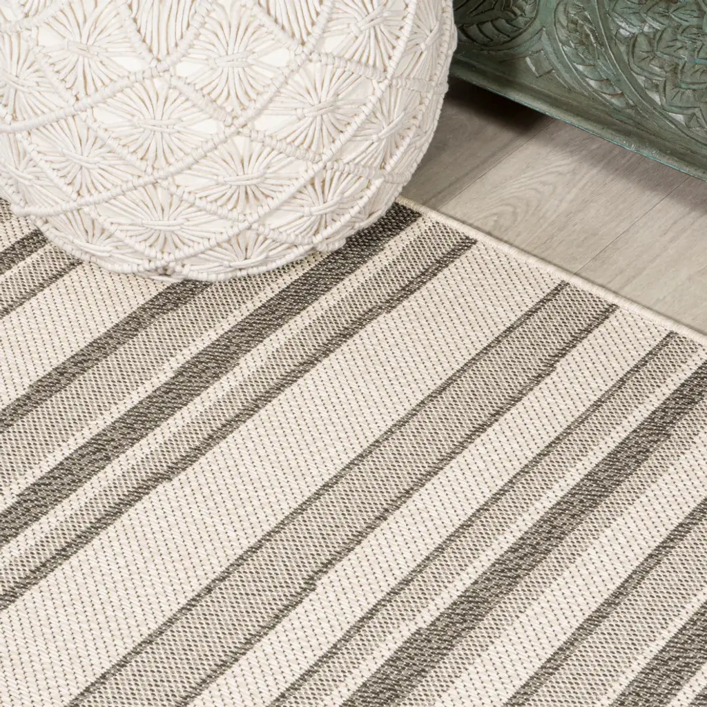 Castara Wavy Stripe Modern Indoor/outdoor Area Rug, Cream/dark Gray, 3X5