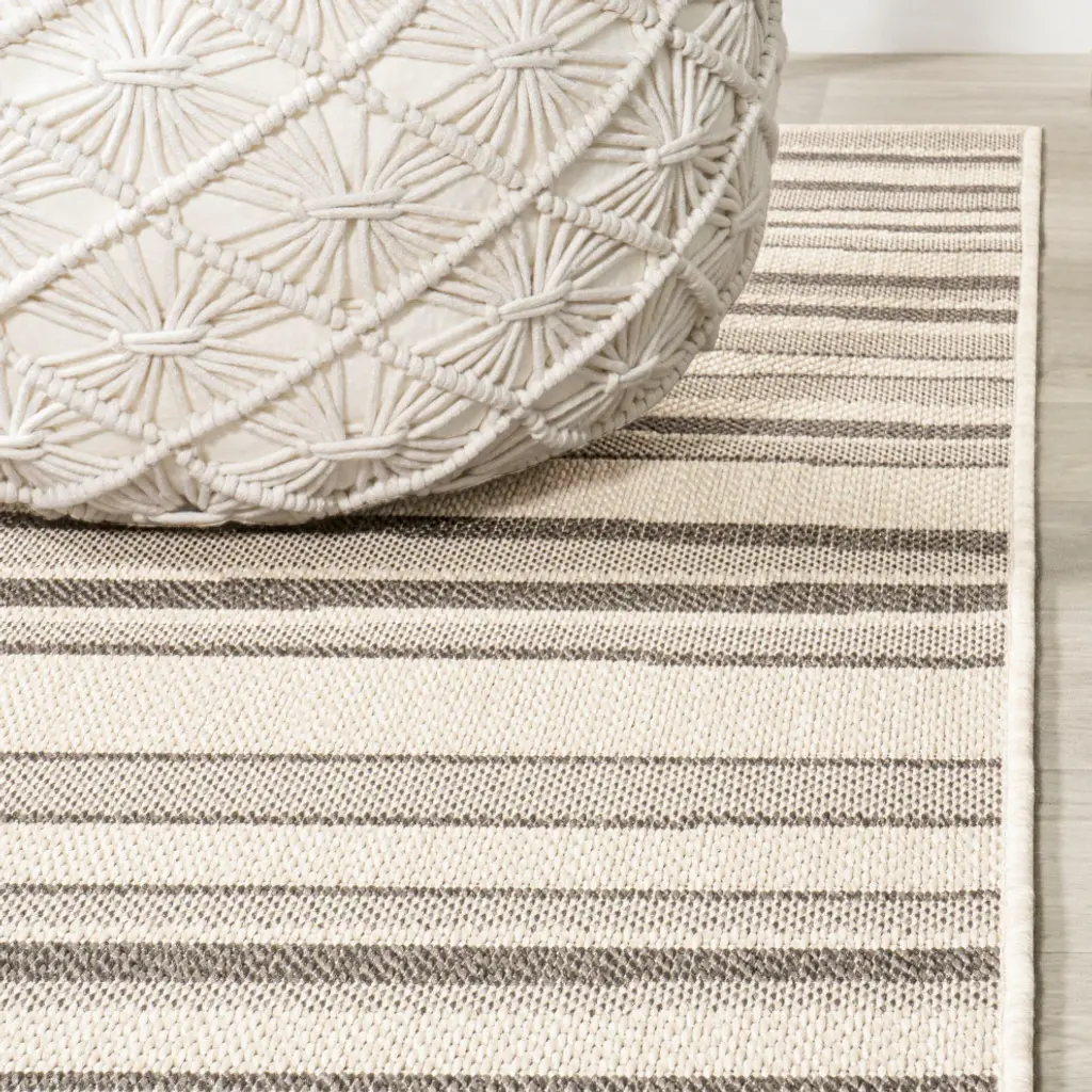 Our wavy stripe rug adds modern style to your mid-century bungalow, beach cottage or farmhouse. Our durable low pile rug features varying stripes in three contrasting colors. Add graphic punch to your living room, dining room, bedroom, or porch with this easy-care, family-friendly rug.Features:• Durable woven design with a short 0.25" pile• The charcoal, light gray and ivory color scheme adds a crisp, modern look to any space• Made from easy-care polypropylene - just sweep, vacuum or hose down with mild soap and water• 100% Polypropylene• No backing, use of rug pad is recommended (sold separately)• Power Loomed in Turkey• Actual Dimension: 2 ft. 11 in. x 5 ft.• Color: • Thickness measures: 0.25 in.• Available in multiple sizes and/or colorsRug Care:• Vacuum regularly and spot clean as needed; avoid direct and continuous exposure to sunlight; use brushless vacuum; remove spills immediately; if liquid, blot with clean, undyed cloth by pressing firmly around the spill to absorb as much as possible; for hard to remove stains, professional rug cleaning is recommended; store in a dry, well ventilated area and rotate for consistent wear• Packing and shipping may cause temporary creases in rugs, which will flatten out after a week on the floor; to expedite the process, try back-rolling your rug before laying it down, and then allow ample time for the remaining creases to relax• Please Note: Due to differences in monitors, some rug colors may vary slightly. Lengths and widths may vary from the published dimensions. Patterns may vary slightly according to shape and size selected.About us:Style your floors with JONATHAN Y. By combining fine craftsmanship and design, this New York creative studio is bringing fashion to your floors. The collection mixes sustainable organic materials, vibrant colors and trend worthy styles to create JONATHAN Y''s distinctive catalog of rugs.