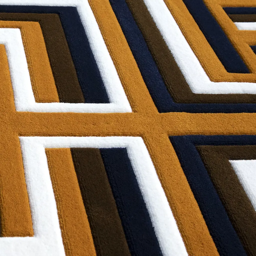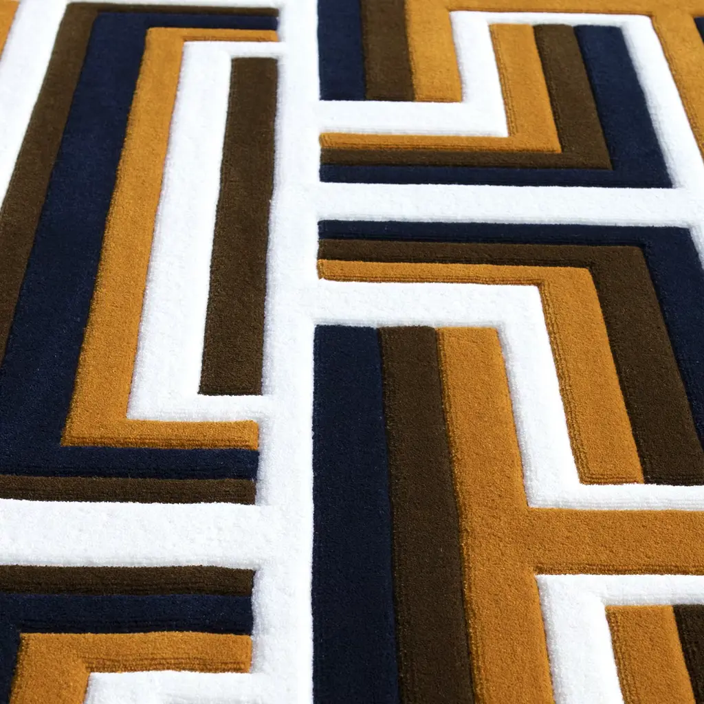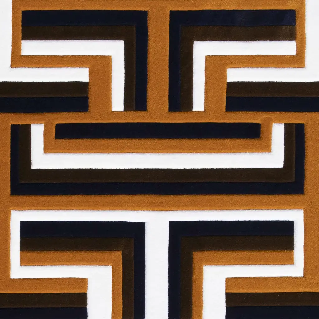 Hypnotizing in its extensive geometric motif reminiscent of a labyrinth, this rectangular rug hand-tufted from New Zealand wool is sure to infuse otherwise dull and minimalist interiors with pure dynamism. Rich chromatic contrasts, still maintaining neutral hues' natural elegance, enhance the overall geometry for a simultaneous effect of boldness and grace. Please consult the Concierge for tailor-made options.