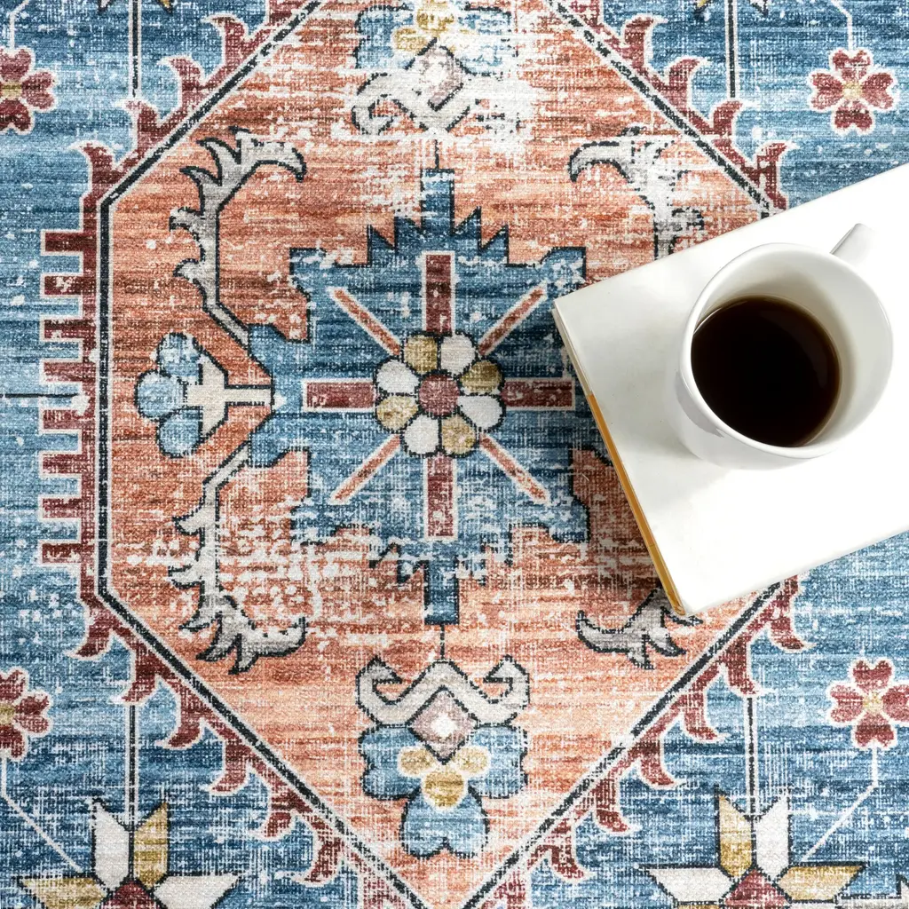 Castle Medallion Spill Proof Washable Rug | Rust - 5' X 8'
