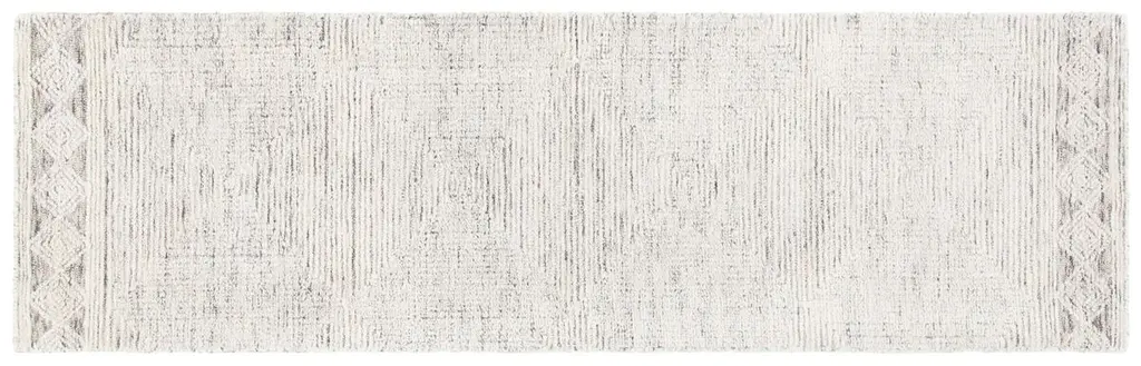 Elevate your home decor with this stunning 10' X 14' Ivory/Grey area rug. Designed for those who appreciate the art of design and exceptional craftsmanship, this rug showcases a large rectangular silhouette and a subtle 3/8" pile height that promises underfoot comfort and a hint of luxury. Hand-tufted in India, this wool masterpiece brings a touch of Bohemian elegance to any setting. Its quality construction is made to endure the test of time, while the neutral palette of ivory and grey harmonizes effortlessly with a range of interior styles from modern to traditional. The rug features a beautifully understated pattern that exudes sophistication; geometric motifs border the rug creating a visually engaging framework. This careful balance of simplicity and intricate pattern work turns the floor into a canvas that complements the beauty of your living space. Perfect for a sophisticated drawing room or a cozy den, this wool area rug serves as both a comfortable foundation and a stylish centerpiece. Indulge in the richness of Indian craftsmanship and enjoy a timeless piece that resonates with grace and style.