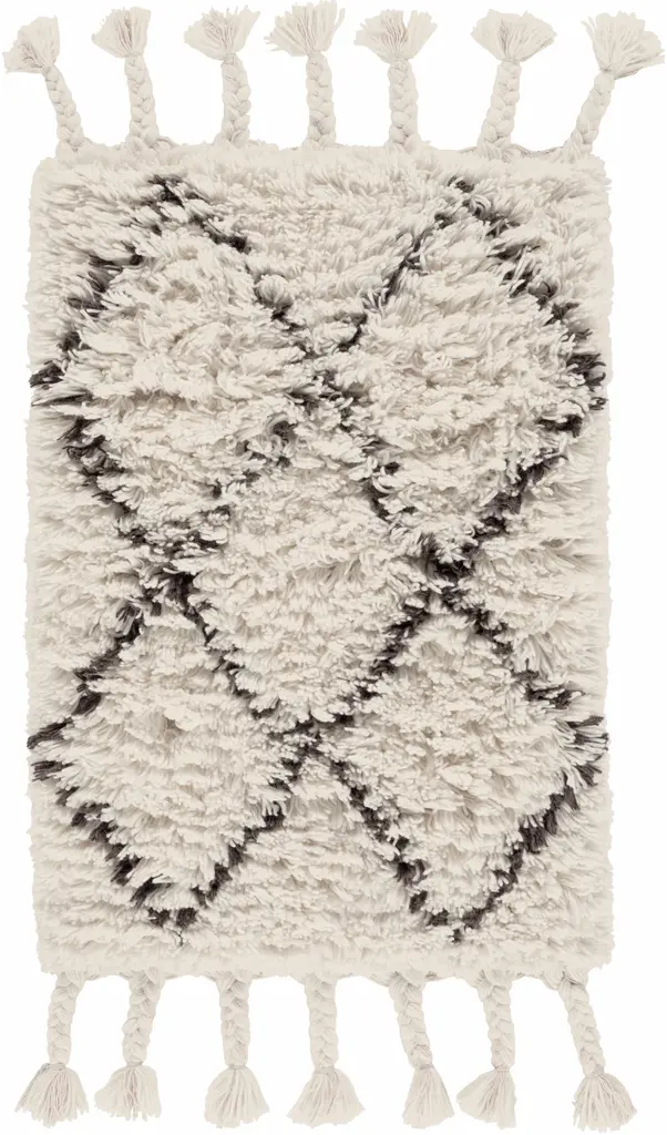 Collection: Catoosa Colors: Charcoal, Ivory Construction: Hand Woven Material: 100% Wool Pile: Plush Pile Pile Height: 1.1" Styles: Bohemian/Global Made In: India Thickness: 1.57" Fringe Length: 6" Price Range: $$$$$ (Affordable)