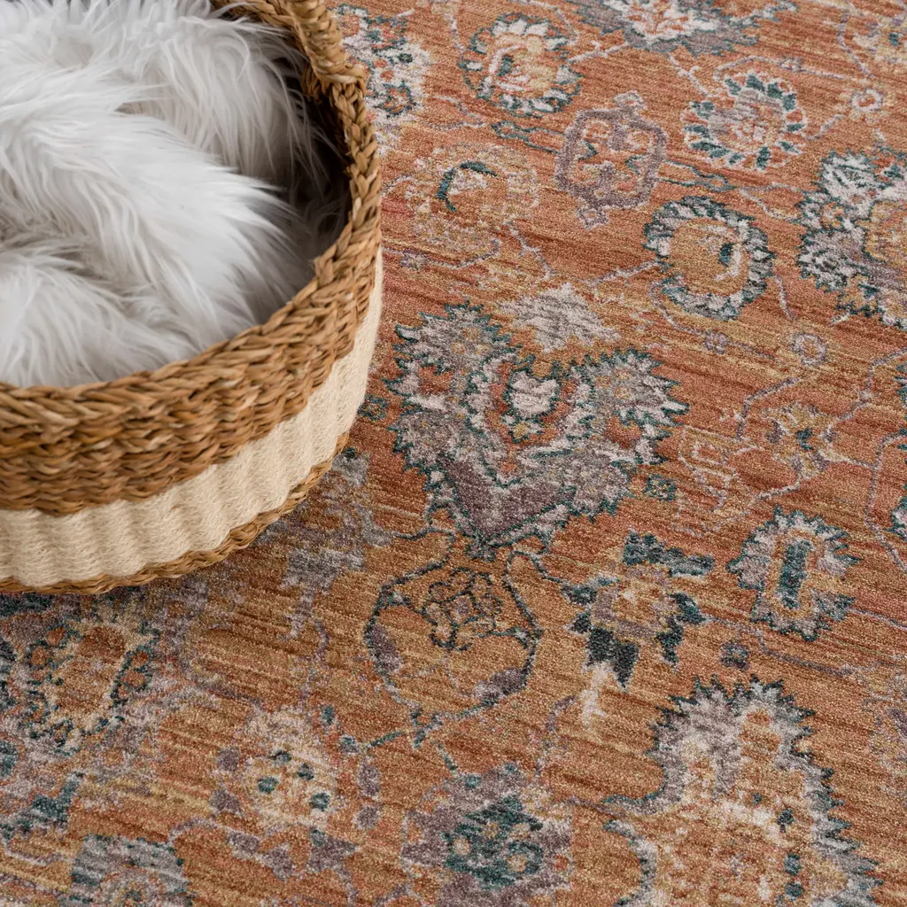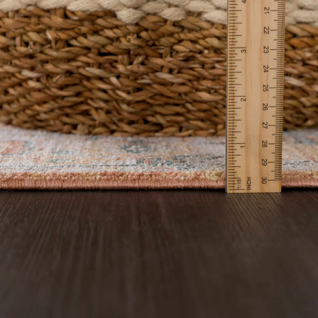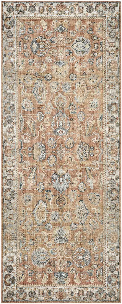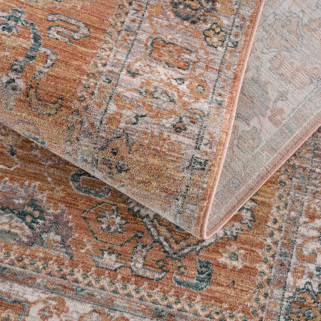 Collection: Cayla Colors: Olive, BurntOrange, OffWhite, MediumGray, DarkBlue, DarkBrown Construction: Machine Woven Material: 100% Polyester Pile: Medium Pile Pile Height: 0.22" Styles: Traditional Made In: Turkey Thickness: 0.33" Fringe Length: 0.1" Price Range: $$$$$ (Affordable)