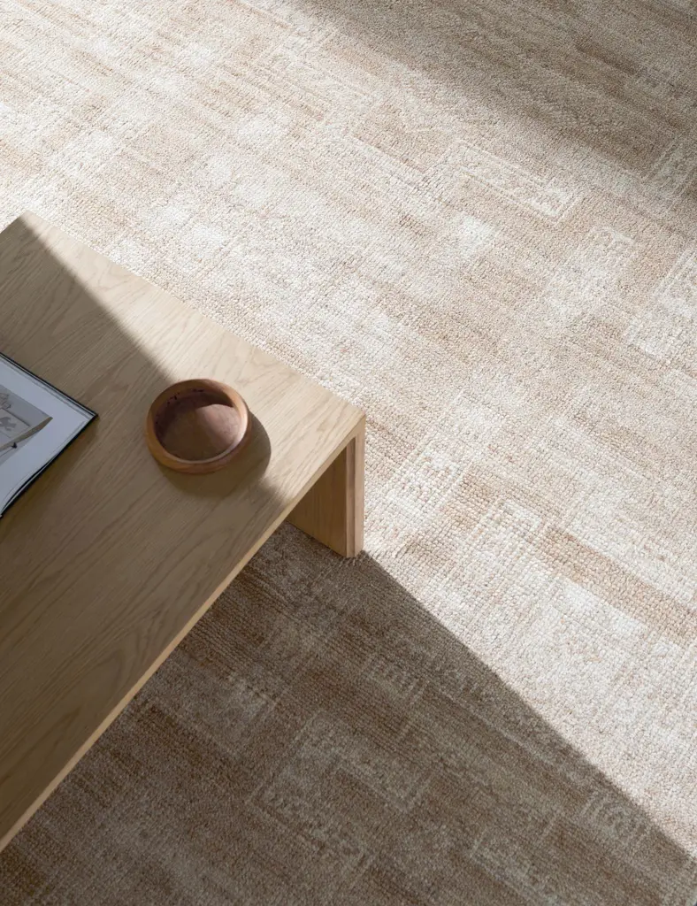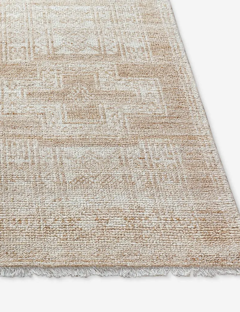 Underpin your design with the seasoned feel of this vintage-style rug. The geometric motifs offer a timeless pattern underfoot in a sandy palette with a subtle fringe for a laid-back touch. This hand-knotted rug is made with strong woolen fibers, creating a lasting foundation to build your style on.
