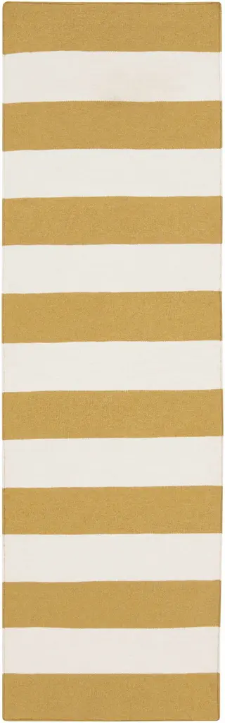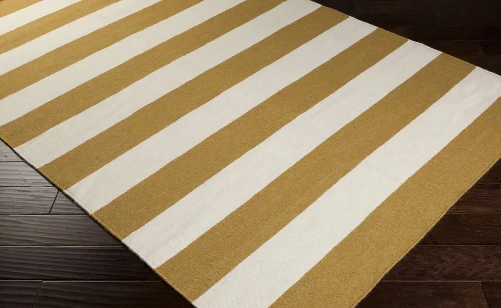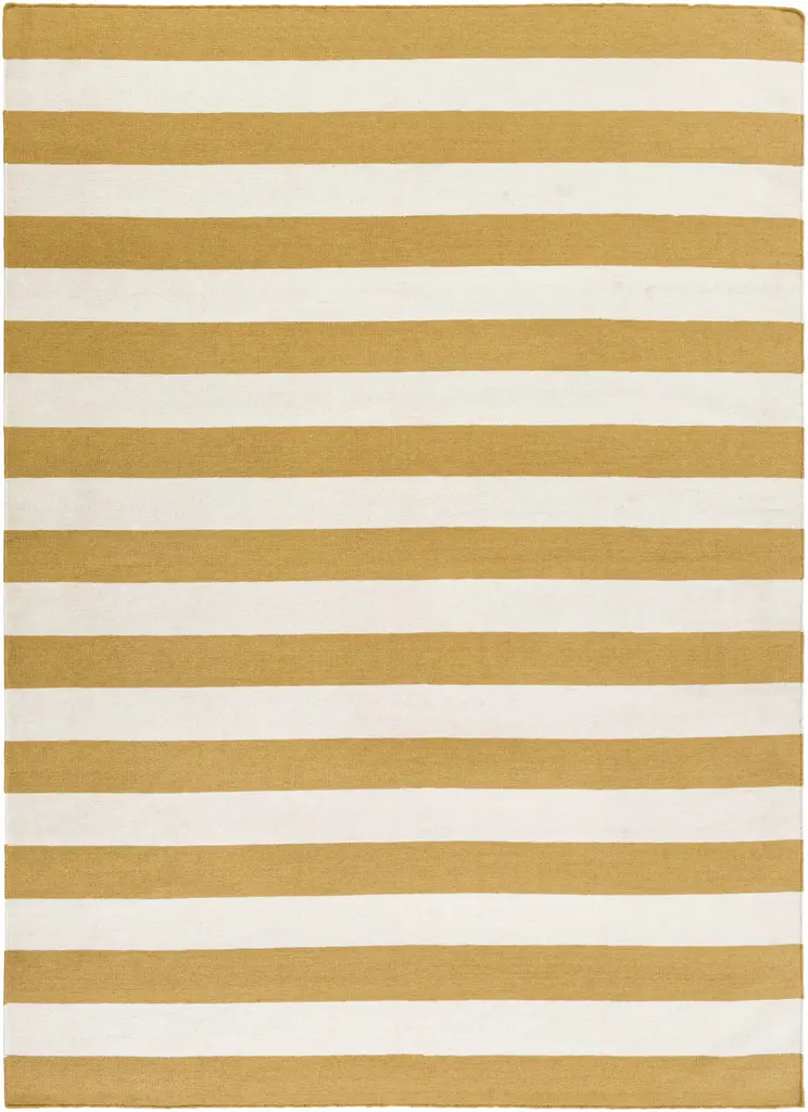 Collection: Cayuta Colors: Mustard, Ivory Construction: Hand Woven Material: 100% Wool Pile: Medium Pile Pile Height: 0.3" Styles: Solid & Striped Made In: India Thickness: 0.16" Price Range: $$$$$ (Most Affordable)