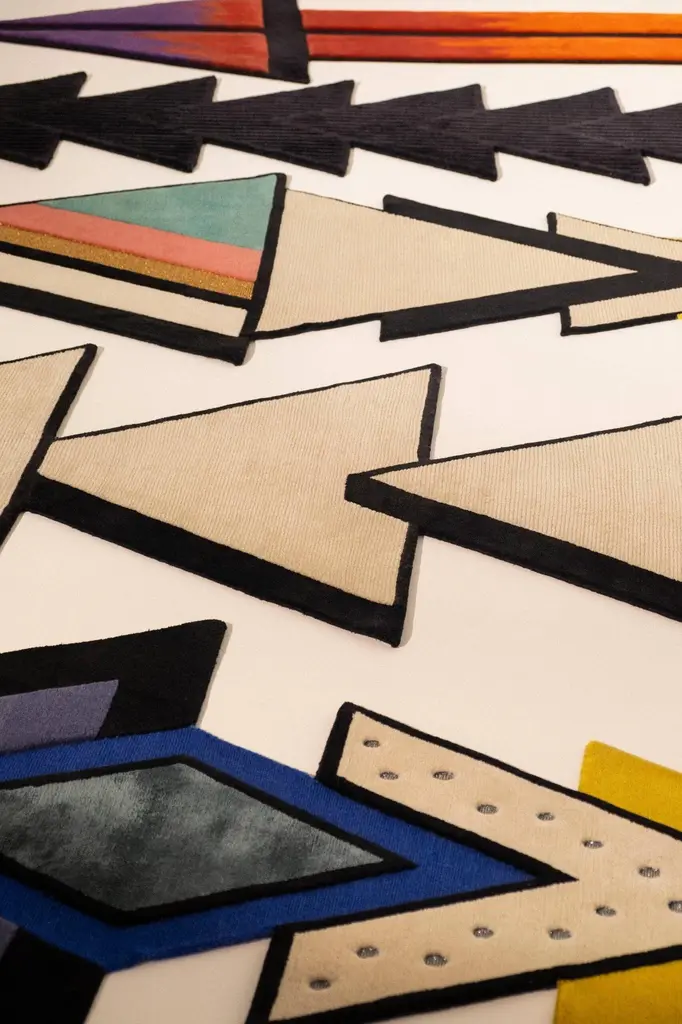 Asad-Bakhtiari has always been fascinated by arrows and their power. The Archer Collection is made of 7 individual designs where the artist explores semiotics and cultural icons, creating 7 unique designs whose meaning is expressed with a combination of natural materials and artisanal craftsmanship.Additional information:Color: StandardMaterial: Himalayan wool and pure silkQuality: A+ (152.000 KNOTS/SQM)Dimensions: 350 x 100 cm.