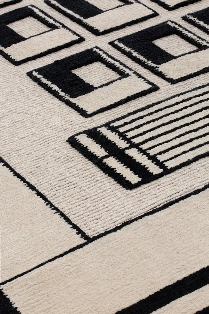 Asmara Collection by Federico Pepe, a tribute to the capital of Eritrea, the UNESCO World Heritage Site known for its futurist architecture. An innovative urbanistic utopia applied to an African context, which is evoked in the design of each rug in the collection. "I applied lines which are inspired by the iconography and the formal essence of modernist architecture.”, explains Federico Pepe. Originally presented as one single hand-knotted rug called Asmara, which quickly became an icon in the cc-tapis catalogue, now in 2023 Asmara has grown into a collection welcoming two new designs: Zolot and Alfa.