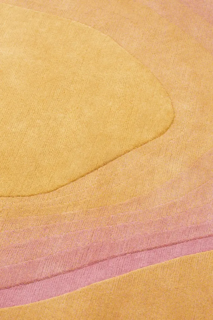 The Tidal collection is a visual investigation into the relationship between texture, shape and color. A sophisticated gradient effect was created through an entirely new coloring system, combining threads of Himalayan wool in alternating saturations to achieve the simple and light effect. To create the soft fade effect central to the design of the collection, cc-tapis developed a new coloring system, combining threads of Himalayan wool in alternating saturations in a labour-intensive process that resulted in a delicate meditation on color and form. “I start with basic geometric forms, circles, squares and rectangles and I let the design transform them,” the designer says of the process.