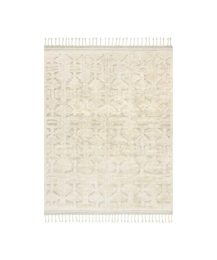 Produced with the handloom technique in the cc-tapis atelier in Kathmandu, Nepal. The rug is made with 100% linen coming from the areas surrounding the atelier. Hand woven, hand shaved and hand painted. The sale of every rug supports cc-foreducation. Size: 6.5' x 9.8' ft. handloom.British designer Faye Toogood has delved into her material library to create her new collection of rugs. The wide range of materials, patterns and haberdashery in the Toogood archives provided the initial inspiration behind the Inventory collection which translate postindustrial influences such as vulcanized rubber, distressed plaster and security mesh into raw yet gentle furnishings. Produced entirely by hand in Nepal, using eco-friendly wools and silks, it is the first time that hand-knotting and hand-weaving have been combined in the same rugs. The designs are available in a restrained palette of cream, and raw, undyed tones - the Toogood aesthetic given a fresh iteration for cc-tapis.materials Linen and cottonfringes Cotton undyedquality handloomDIMENSIONS:230 x 300 cm