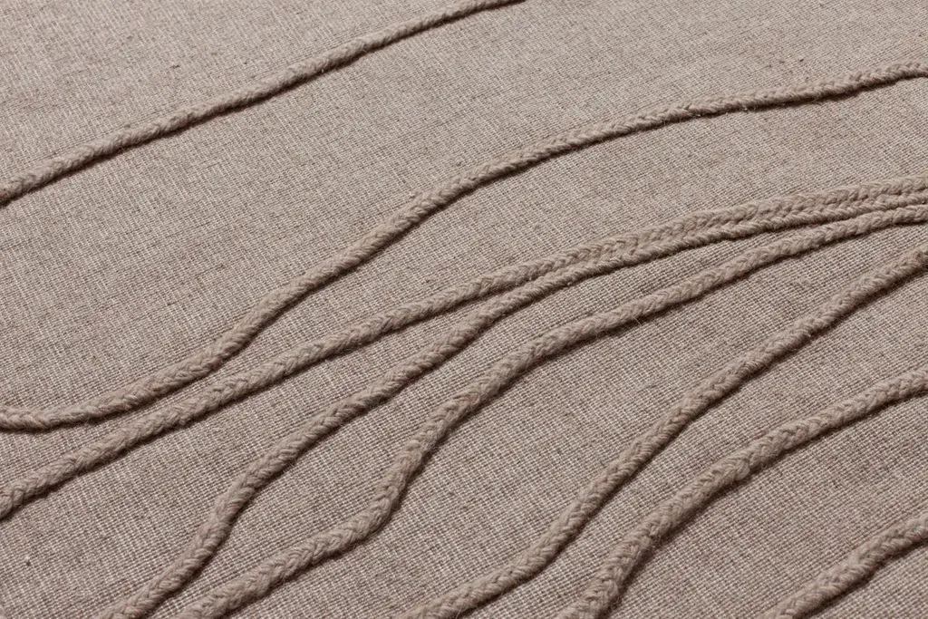 Produced with the handloom technique in the cc-tapis atelier in Kathmandu, Nepal. The rug is handwoven in flat-weave with Himalayan wool and cotton inserts coming from the areas surrounding the atelier. The sale of every rug supports cc-for education. Size: 7.5' x 9.8' ft. handloom.British designer Faye Toogood has delved into her material library to create her new collection of rugs. The wide range of materials, patterns and haberdashery in the Toogood archives provided the initial inspiration behind the Inventory collection which translates post-industrial influences such as vulcanized rubber, distressed plaster and security mesh into raw yet gentle furnishings. Produced entirely by hand in Nepal, using eco-friendly wools and silks, it is the first time that hand-knotting and hand-weaving have been combined in the same rugs. The designs are available in a restrained palette of cream and raw, undyed tones, the Toogood aesthetic given a fresh iteration for cc-tapis.