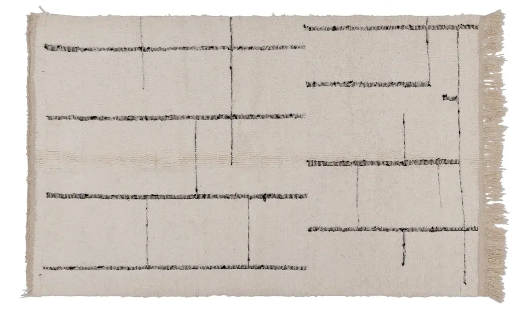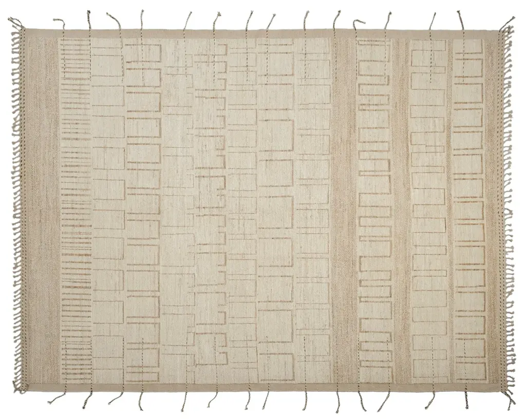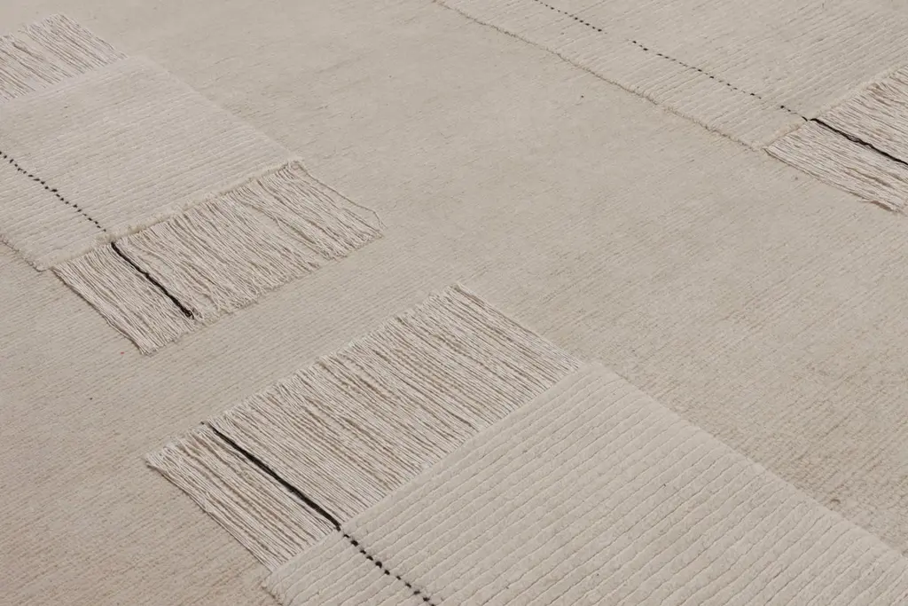 Hand knotted in the cc-tapis atelier in Kathmandu, Nepal. The rug is made with a cotton weave, Himalayan wool and pure silk coming from the areas surrounding the atelier. Created with a special technique used exclusively by cc-tapis. The sale of every rug supports cc-foreducation. Size: 7.5' x 9.8' ft. oldieBritish designer Faye Toogood has delved into her material library to create her new collection of rugs. The wide range of materials, patterns and haberdashery in the Toogood archives provided the initial inspiration behind the Inventory collection which translate post-industrial influences such as vulcanized rubber, distressed plaster and security mesh into raw yet gentle furnishings. Produced entirely by hand in Nepal, using eco-friendly wools and silks, it is the first time that hand-knotting and hand-weaving have been combined in the same rugs. The designs are available in a restrained palette of cream, and raw, undyed tones - the Toogood aesthetic given a fresh iteration for cc-tapis.