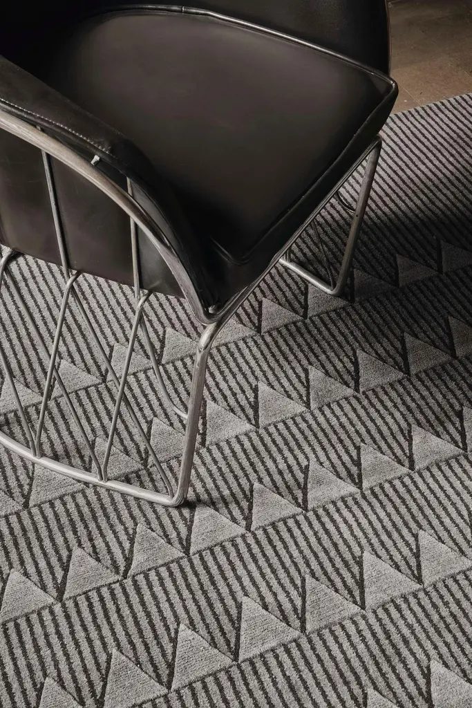 Hand knotted in the cc-tapis atelier in Kathmandu, Nepal. The rug is made with a cotton weave and a Himalayan wool, coming from the areas surrounding the atelier. 152.000 individual knots per square meter approximately. The sale of every rug supports cc-foreducation. Size: 8.2' x 8.8' ft. A+ (152.000 knots/sqm approximate)During a long lunch at Kaléo, a restaurant designed by David/Nicolas in Beirut, the triangle patterns that decorate the walls caught the eyes of the founders of cc-tapis, a detail which David/Nicolas translated into fine hand knotted rugs for the plasterworks collection.cc-tapis is an Italian company which produces contemporary hand-knotted rugs which are created in Nepal by expert Tibetan artisans.The company was founded by Nelcya Chamszadeh and Fabrizio Cantoni in France who have been producing hand-knotted rugs in Nepal for over 18 years. In 2011 cc-tapis moved to Milan where the company is now based and a team of designers lead by Daniele Lora, art-director and partner, innovate through a new approach to traditional methods.A strong respect for the materials and for the culture of this ancient craft is reflected in the company’s eco-friendly approach to every step of production, ranging from the hand spinning of the softest Himalayan wool to the use of purified rainwater for the washing of the final products, making each one of cc-tapis rugs unique.Far from mass production, cc-tapis aims to offer a tailored service to those who understand and enjoy a high-end product, where a three month production time contains a story of ageless culture.