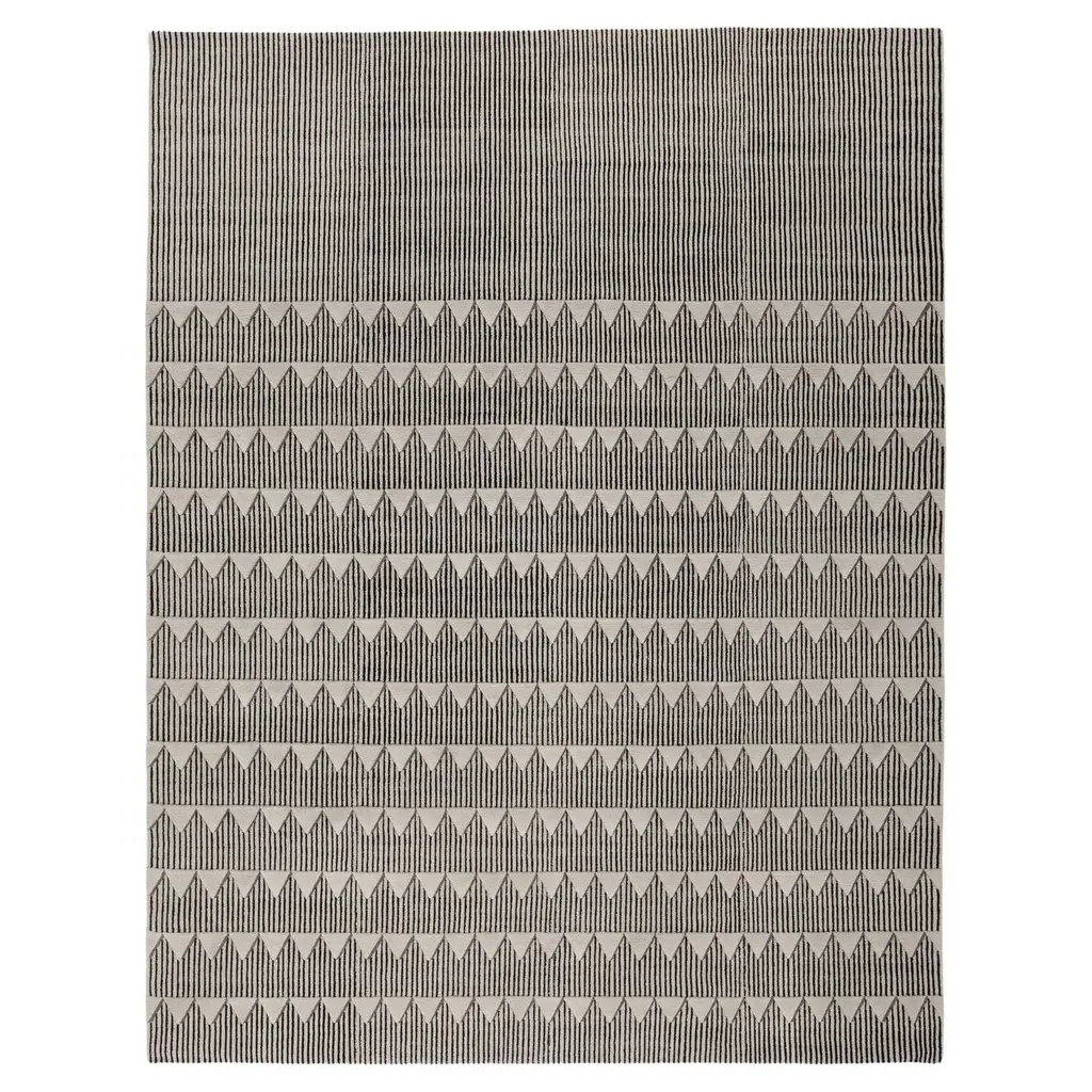Hand knotted in the cc-tapis atelier in Kathmandu, Nepal. The rug is made with a cotton weave and a Himalayan wool, coming from the areas surrounding the atelier. 152.000 individual knots per square meter approximately. The sale of every rug supports cc-foreducation. Size: 8.2' x 8.8' ft. A+ (152.000 knots/sqm approximate)During a long lunch at Kaléo, a restaurant designed by David/Nicolas in Beirut, the triangle patterns that decorate the walls caught the eyes of the founders of cc-tapis, a detail which David/Nicolas translated into fine hand knotted rugs for the plasterworks collection.cc-tapis is an Italian company which produces contemporary hand-knotted rugs which are created in Nepal by expert Tibetan artisans.The company was founded by Nelcya Chamszadeh and Fabrizio Cantoni in France who have been producing hand-knotted rugs in Nepal for over 18 years. In 2011 cc-tapis moved to Milan where the company is now based and a team of designers lead by Daniele Lora, art-director and partner, innovate through a new approach to traditional methods.A strong respect for the materials and for the culture of this ancient craft is reflected in the company’s eco-friendly approach to every step of production, ranging from the hand spinning of the softest Himalayan wool to the use of purified rainwater for the washing of the final products, making each one of cc-tapis rugs unique.Far from mass production, cc-tapis aims to offer a tailored service to those who understand and enjoy a high-end product, where a three month production time contains a story of ageless culture.