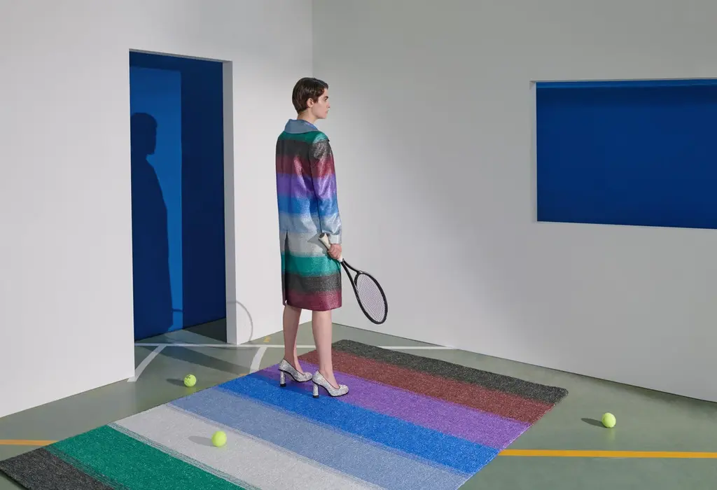 Together with Marco De Vincenzo, cc-tapis decided to undertake the challenge of translating his iconic lurex textiles into a rug. Lurex is a material which is very rarely used in the rug making world and something foreign to traditional Indian weavers. Both cc-tapis and Marco De Vincenzo revel in experimentation and together developed a new collection which reflected the identity and spirit of both brands. “I have always been fascinated by thread as an image of life itself, and by the act of spinning or weaving as a metaphor of destiny. When I met cc-tapis I immediately glimpsed how many connections there were between their creative universe and mine, and how strong the bond we both feel we have with matter and its infinite possibilities of transformation. This is how our exchange of ideas was born, like a pre-established design that takes place at the right time, in the form of a rainbow of frosted colors.” - Marco De Vincenzo The MDV Collection is available in 7 other models.