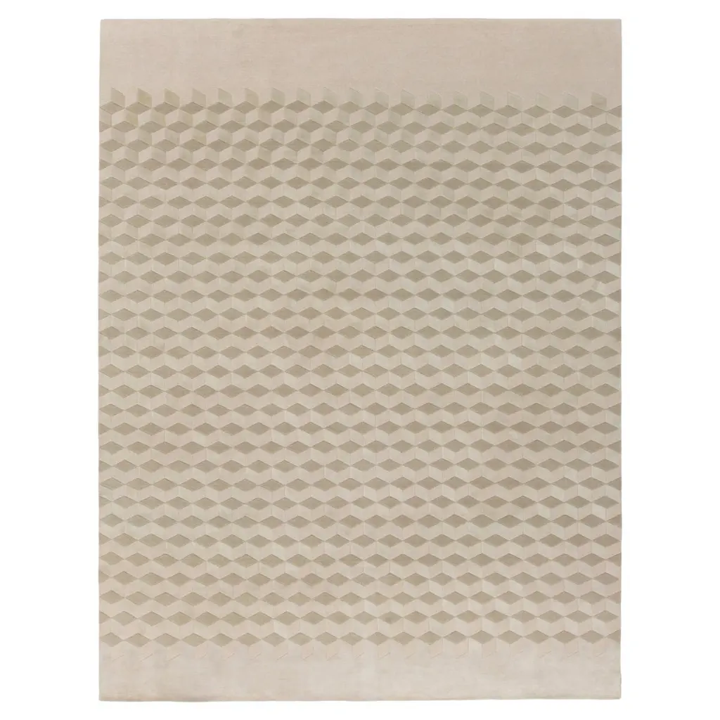 Hand knotted in the cc-tapis atelier in Kathmandu, Nepal. The rug is made with a cotton weave, Himalayan wool and silk pile, coming from the areas surrounding the atelier. 125.000 individual knots per square meter approximately. The sale of every rug supports cc-foreducation. Size: 7.5' x 9.8' ft. A (125.000 knots/sqm approx.)A geometric design inspired by traditional Italian stone flooring originally made in marble. The bold and contrasting design is re-created either in 100% pure Himalayan wool or the pattern is created with alternating parts of wool and pure silk.