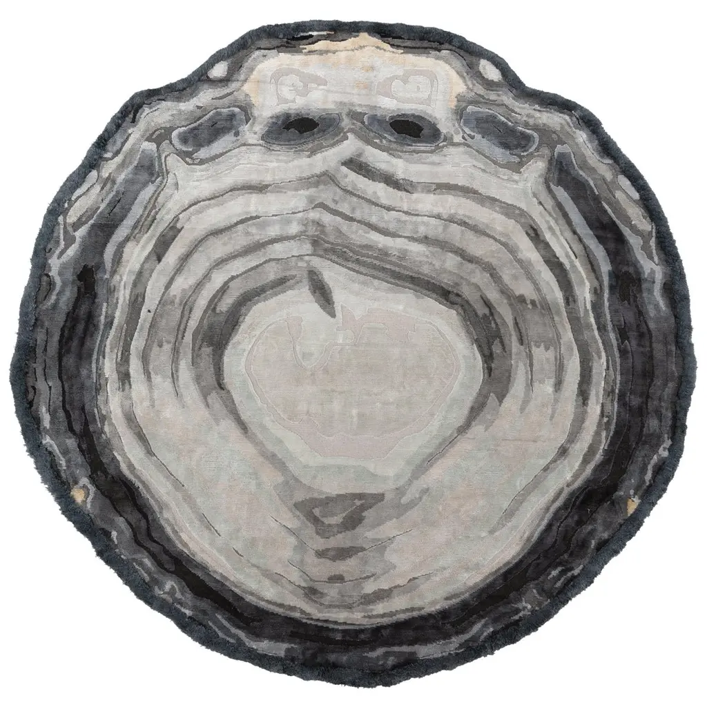 Hand knotted in the cc-tapis atelier in Kathmandu, Nepal. The rug is made with a cotton weave, a Himalayan wool, bamboo silk and linen borders, coming from the areas surrounding the atelier. 125.000 individual knots per square meter approximately. The sale of every rug supports cc-foreducation. Size: 8.2' x 8.2' ft. A (125.000 knots/sqm approx.) A homage to the country it was created in, the name “Parvata” is the Nepali word for mountain and is produced by cc-tapis at the base of the Himalayas. A concept translated by the weavers to convey the natural wonders of Himalayan rock formations.