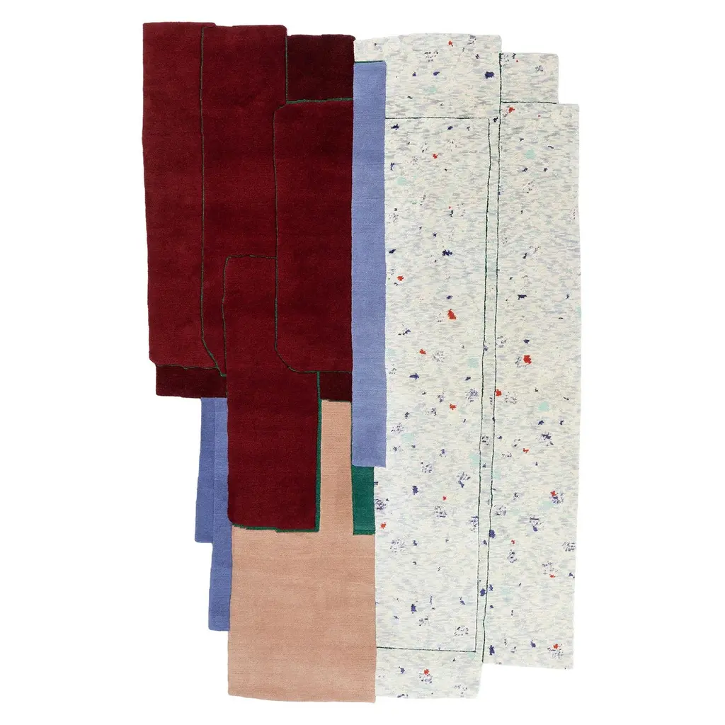 Patcha by Patricia Urquiola Why not talking about upcycling as a gesture? Patricia Urquiola reinterprets the change of mentality, of moving common habits and creative flows towards sustainability and circularity. Indeed, discarded wool is now re-used and dignified again to create a graphic and materic decoration. Also, the factual gesture of Urquiola’s design is the overlapping, the hand-crafted idea of putting together different patches in a playful collage. The core impression is a spontaneous effect, given by the match of different pieces, each with its own colour and thickness level. The result is a combination of woollen fragments that resemble jagged papers and colourful cardboards, assembled in an extemporized collage. The implemented dyeing technique creates random colours on the wool, emphasizing the concept of spontaneity and experimentation. The graphic lines of the rugs are made out of silk, obtained from Indian Sari vests. Borders of the rugs are irregular, giving the impression of an in-progress design. They are linked together creating a spontaneous shape.Additional Information:Color: BlueMaterial: Himalayan wool and recycled silkQuality: 125.000 knots/sqm approxDimensions: 190 x 300 cm.