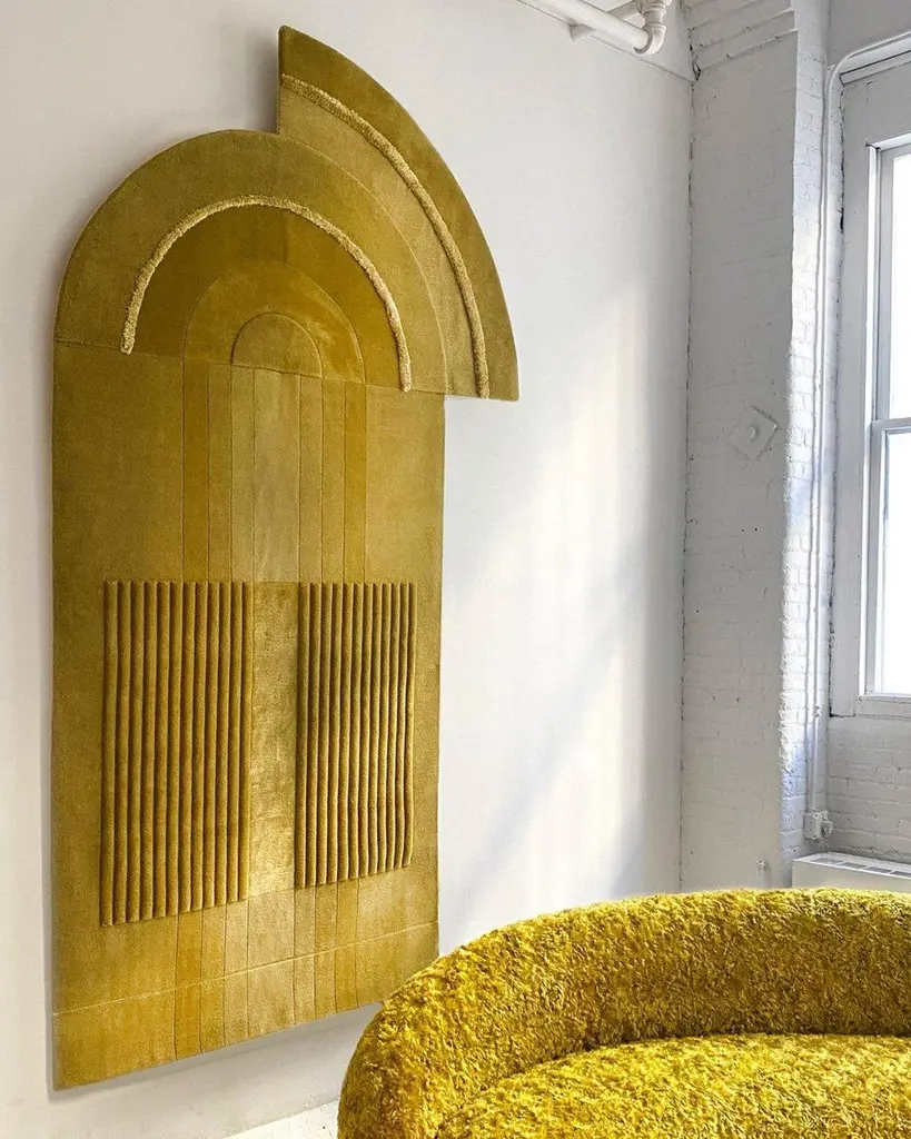 Duplex launches “Gold is Bold" project: a unique collaboration with cc-tapis to celebrate boldness. The iconic Biss rug collection designed by Mae Engelgeer and hand knotted in Nepal by cc-tapis is interpreted in rich gold tones. The rug collection is complemented by the Julep sofa designed by Jonas Wagell for Tacchini upholstered in the exclusive gold Raf Simons/Kvadrat mohair.Available exclusively through DUPLEX. Born in France. Designed in Milan. Produced in Nepal.cc-tapis is an Italian company which produces contemporary hand-knotted rugs which are created in Nepal by expert Tibetan artisans.The company was founded by Nelcya Chamszadeh and Fabrizio Cantoni in France who have been producing hand-knotted rugs in Nepal for over 18 years. In 2011 cc-tapis moved to Milan where the company is now based and a team of designers lead by Daniele Lora, art-director and partner, innovate through a new approach to traditional methods.A strong respect for the materials and for the culture of this ancient craft is reflected in the company’s eco-friendly approach to every step of production, ranging from the hand spinning of the softest Himalayan wool to the use of purified rainwater for the washing of the final products, making each one of cc-tapis rugs unique.Far from mass production, cc-tapis aims to offer a tailored service to those who understand and enjoy a high-end product, where a three month production time contains a story of ageless culture.Hand-knotted in the cc-tapis atelier in Kathmandu, Nepal. The rug is made with Himalayan 90% Wool and 10% Silk coming from the areas surrounding the atelier. 152.000 individual knots per square meter approximately. The sale of every rug supports cc-foreducation.