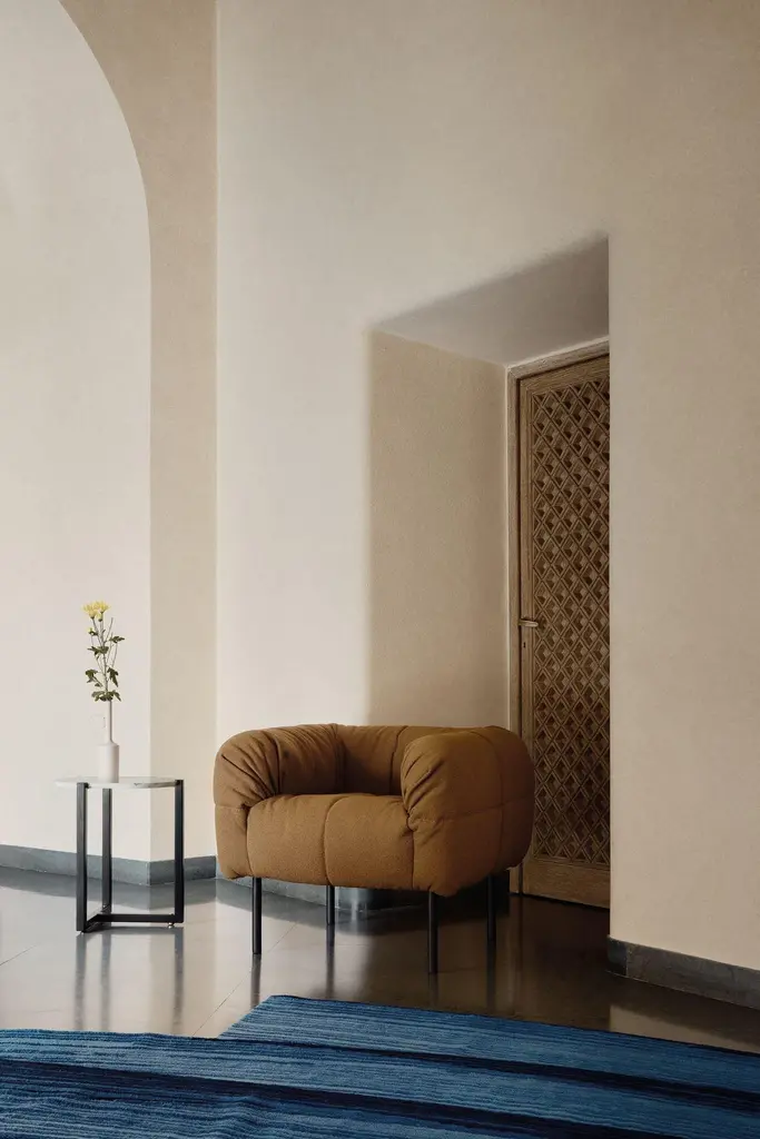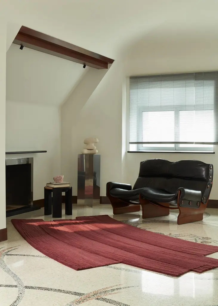 Stroke by Sabine Marcelis The Stroke collection was really about creating a singular gesture as a rug. A simple brush stroke which highlights the extraordinary craftsmanship of woven rugs. The varied pile height and subtle color differences accentuate the 3 dimensionalities of these rugs. A drawing, ‘stroke’ on the floor ‘Rooms become a canvas’ The total interior is the artwork. The stroke is the start of it, complemented by and complimenting the rest of the furniture to complete the artwork. The stroke symbolizes a start, to build upon. Simple, yet strong gestures as inspiration: The pure act of whiting out windows by brushing on white paint. The strong singular gesture of a Roy Lichtenstein painting One act which really brings out the materiality and showcases the beauty of the production process. Subtle differences in color provide the effect, color is used as a design tool, not ornamentally Drawing on the floor Versatility It demands its own attention but can coexist and complement other furniture in a space. It's not too loud, but it is powerful. I thought of my own interior and what kind of a rug I would place in it. There is already so many diverse furniture pieces, the rug would need to pull it all together and not create chaos out of the total.Additional information:Color: BlueMaterial: Himalayan woolQuality: A+ (152.000 knots/sqm approx)Dimensions: 300 x 160 cm.