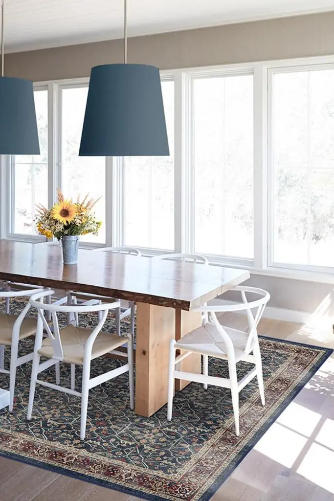 Celestine Sapphire Blue Rug features a rich jewel tone with a whimsical floral design. Intricate floral vines crawl through it mimicking a lattice panel, while its distressed palette of sapphire blue and vintage red gives it an ethereal look.