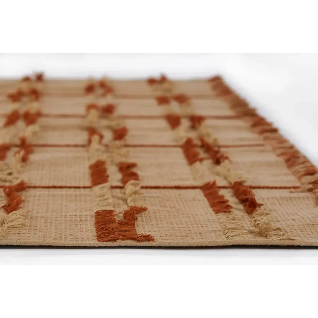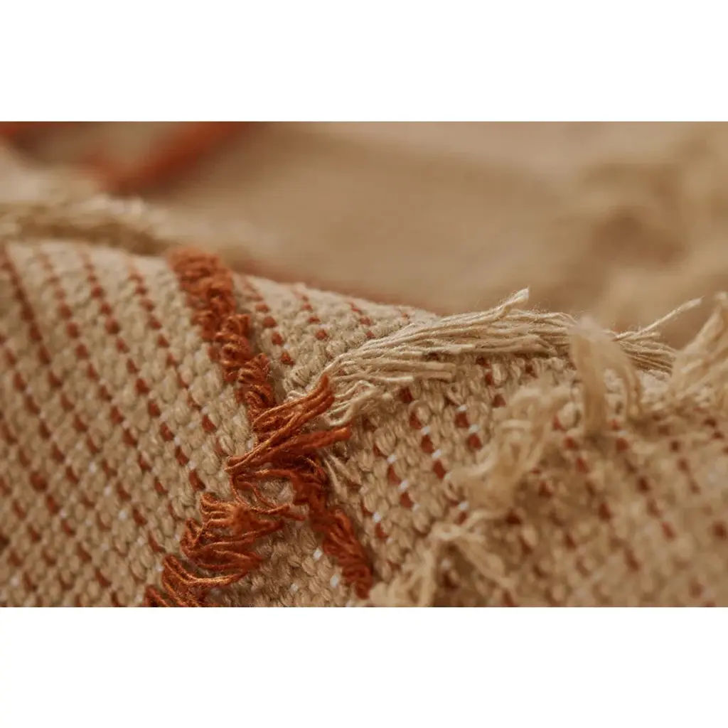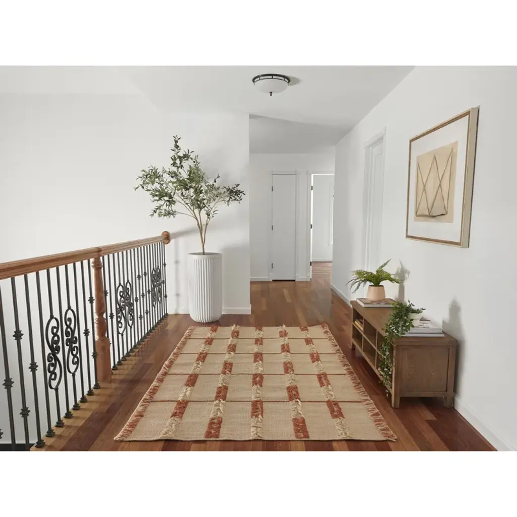 Add an earthy yet elevated look to your space (indoors and out) with this brown area rug. It's handwoven from recycled materials for an eco-friendly twist, and it showcases a high-low stripe pattern for visual and underfoot texture. Fringe detailing at each end along each side gives this rug a carefree vibe we love. Plus, the medium pile height sets a cozy foundation for your living room or patio furniture while still being easy to vacuum.